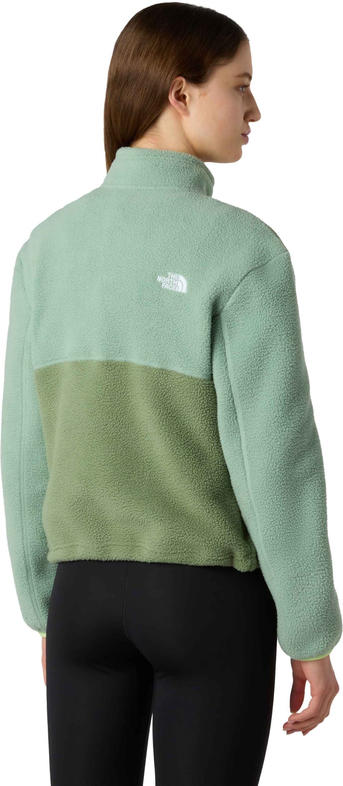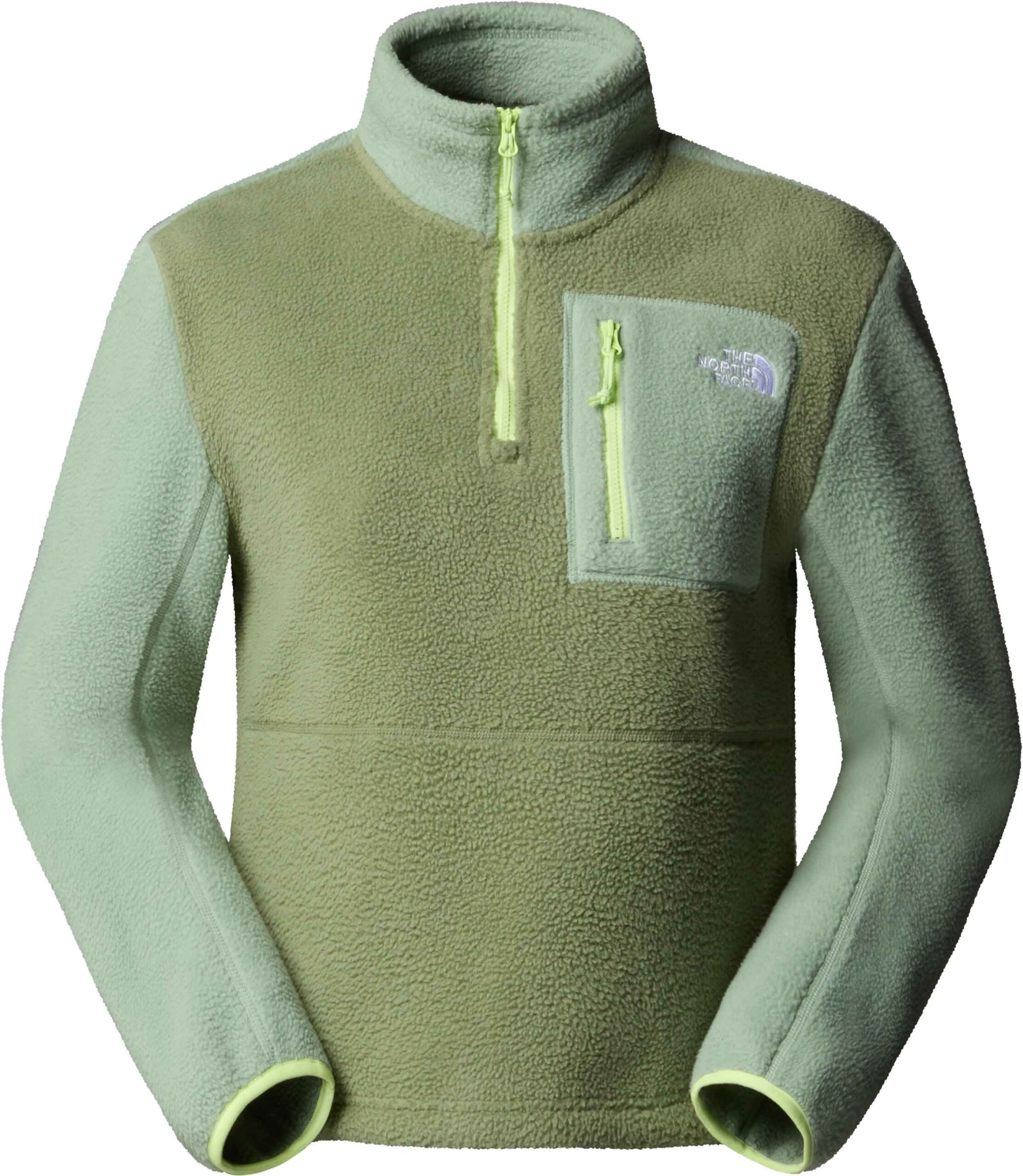 The North Face Yumiori 1/4 Zip polaire femme Bark Mist Slate Moss Astro Lime en micropolaire recyclée offre chaleur légère, respirabilité, col montant et poche poitrine zippée pour la ville et les sentiers.
