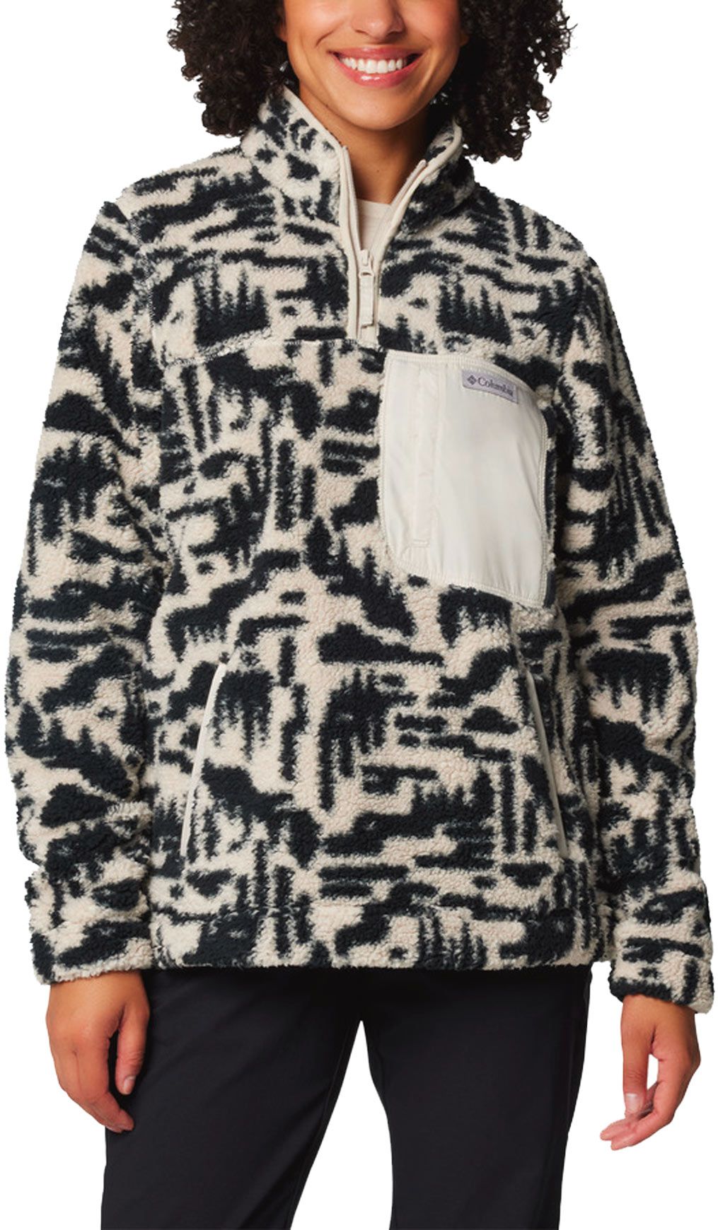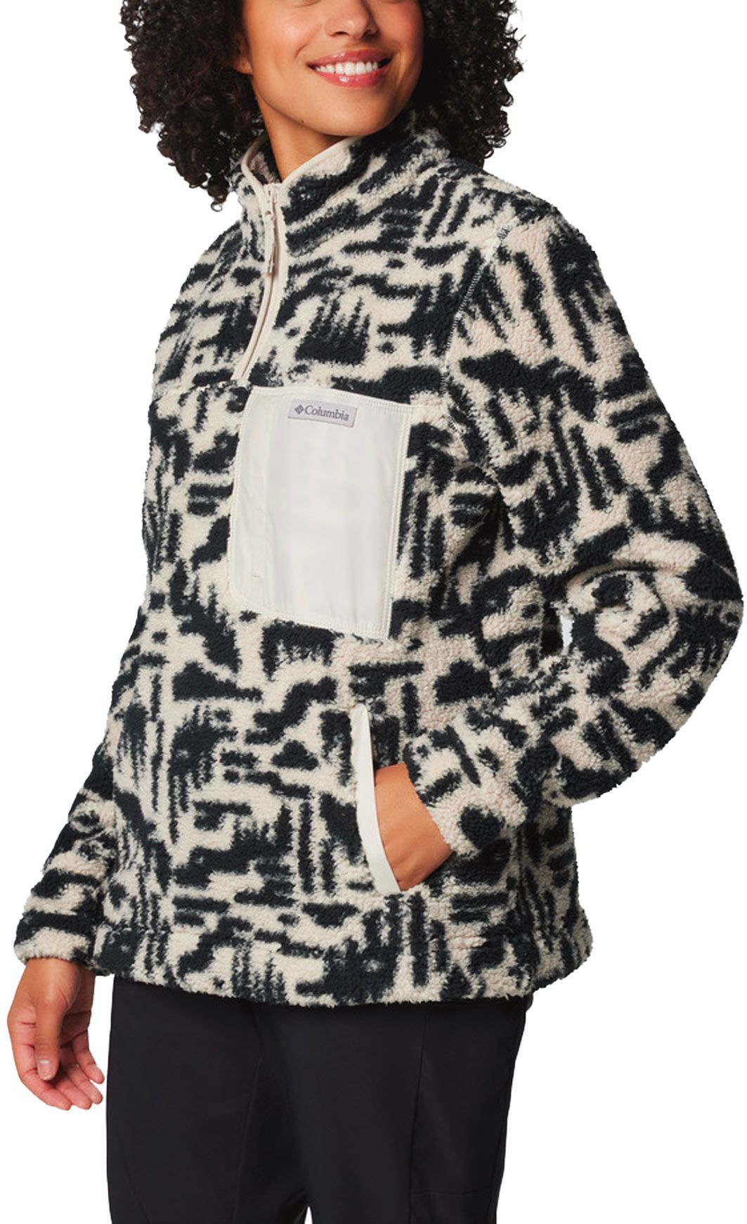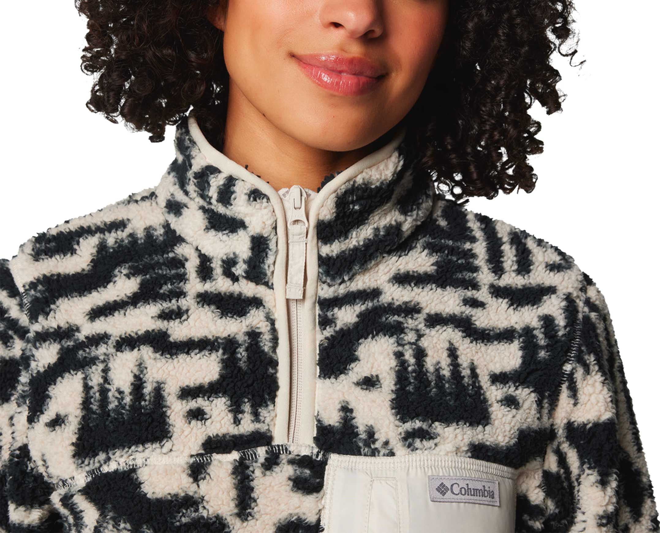 Columbia West Bend 1/4 Zip II : polaire femme col montant, poche poitrine zippée, poche kangourou, imprimé all-over, chaleur hivernale outdoor ou ville.
