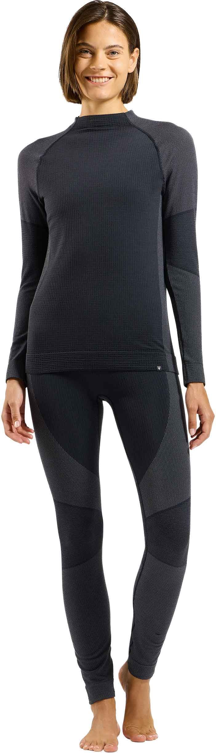 Collant technique Seamless Performance Black femme Odlo en laine mérinos thermo-régulante et anti-odeurs, sans coutures pour un confort maximal sous pantalon lors des sorties hivernales.