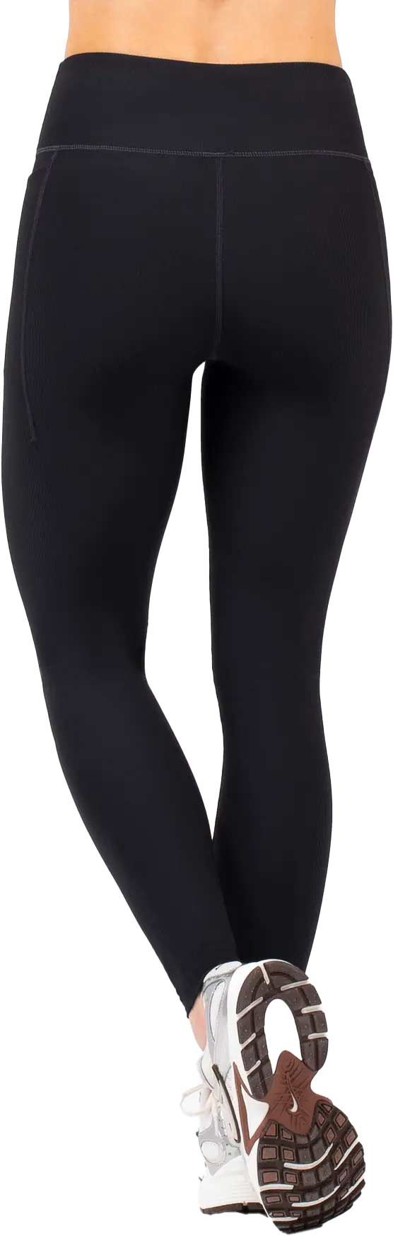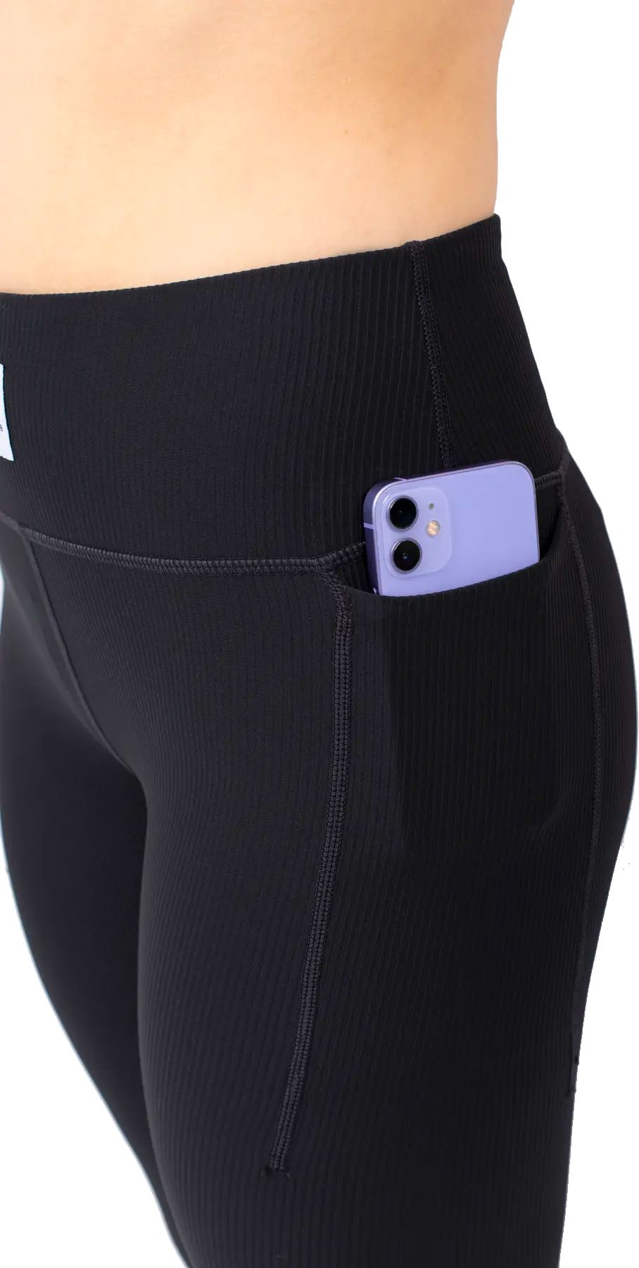 Collant Pocket Rib Tights Black Eivy femme en maille côtelée recyclée OEKO-TEX®, chaud, séchant rapide, coupe mi-haute avec poche latérale et coutures plates.