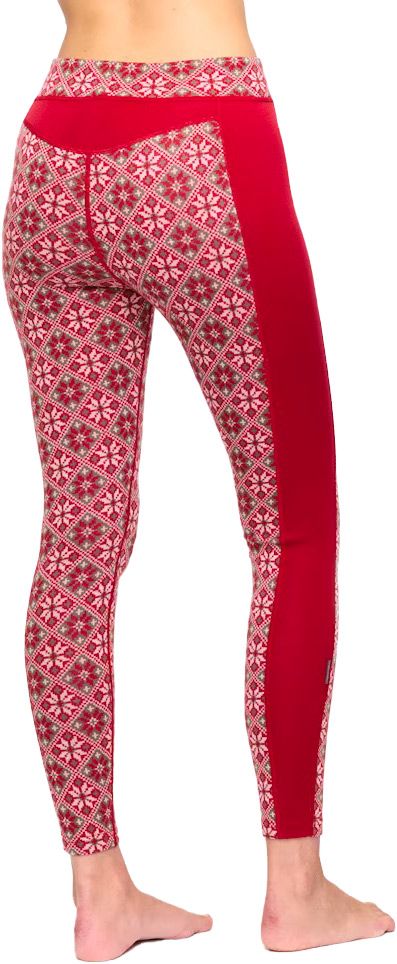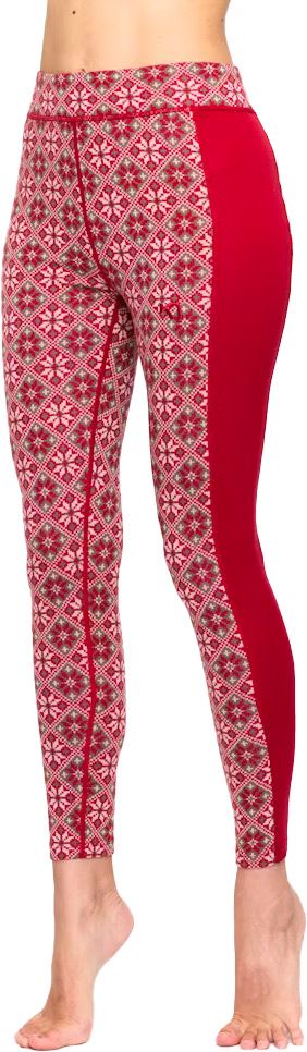 Kari Traa Rose High Waist Rou, legging technique femme en laine mérinos IWTO respirante et anti-odeurs, garde la chaleur même humide, coupe longue protégeant chevilles, coutures plates et taille élastique pour confort en activités hivernales.