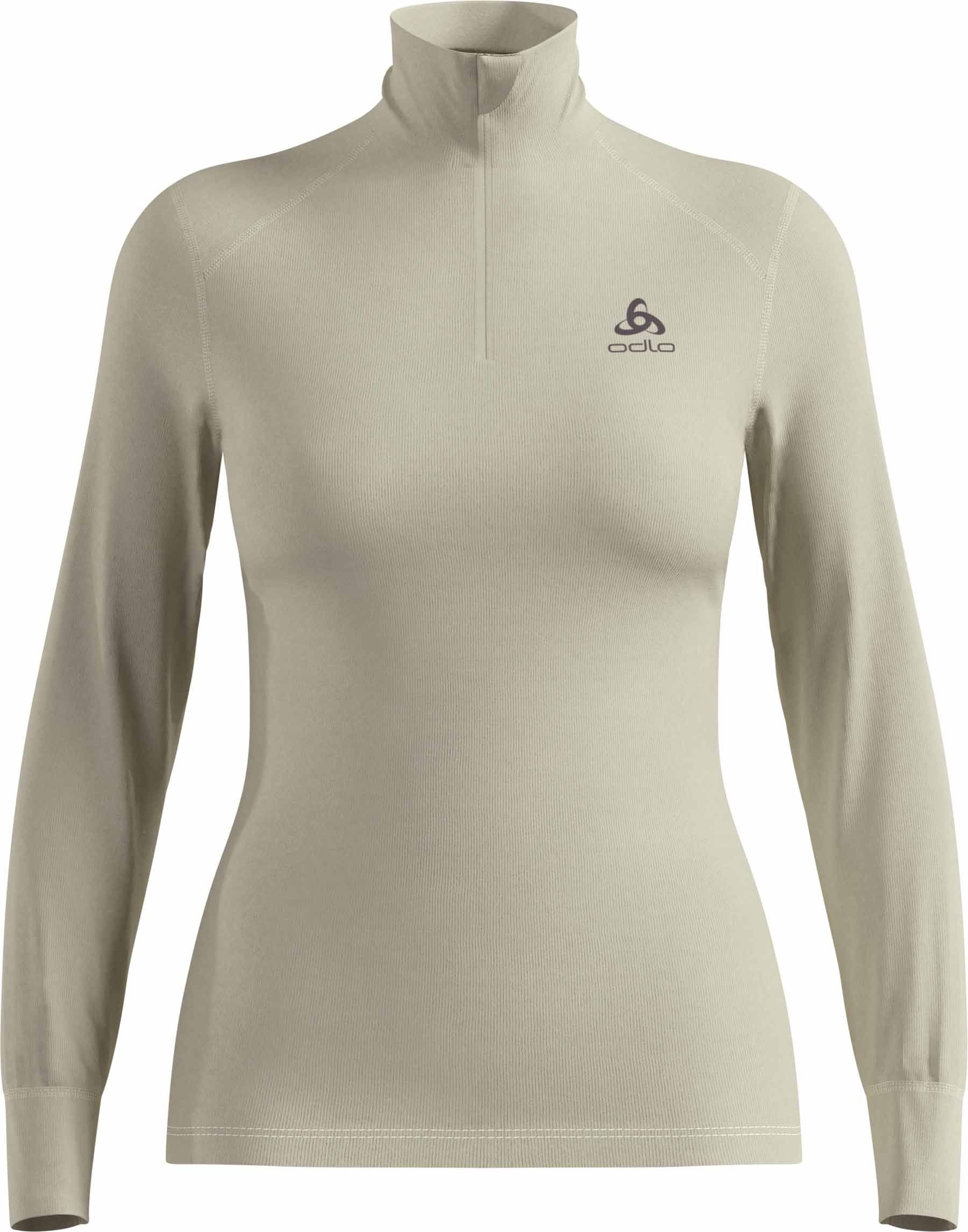 Odlo Half Zip Active Warm Eco première couche femme en fibres recyclées, thermique et respirante, protège du froid tout en gardant une grande liberté de mouvement pour ski, rando ou sport outdoor.