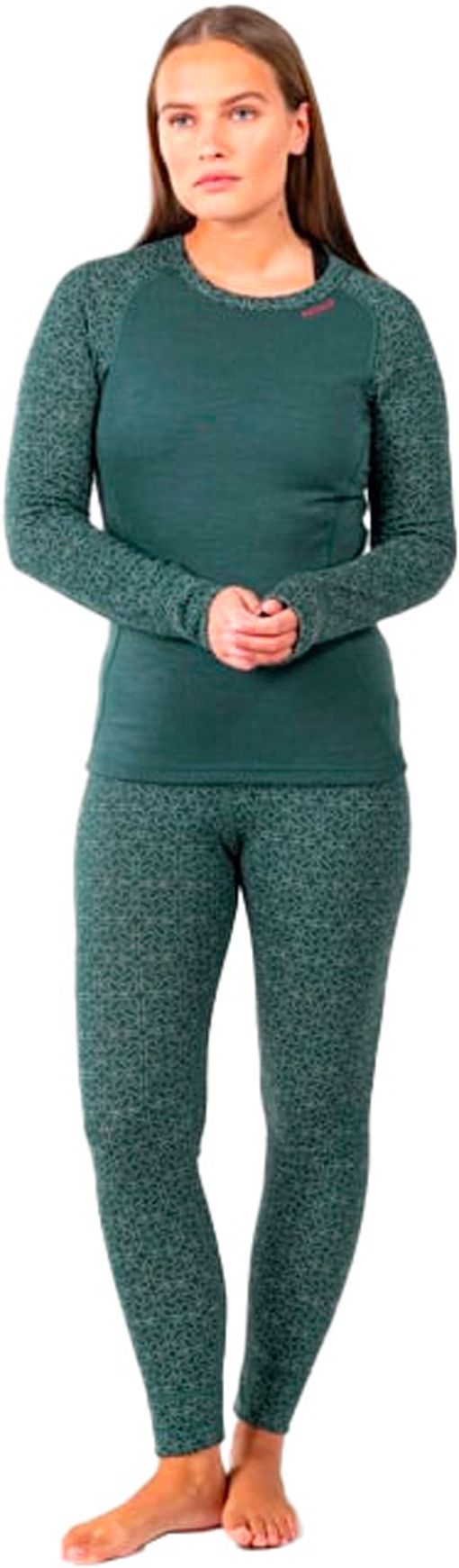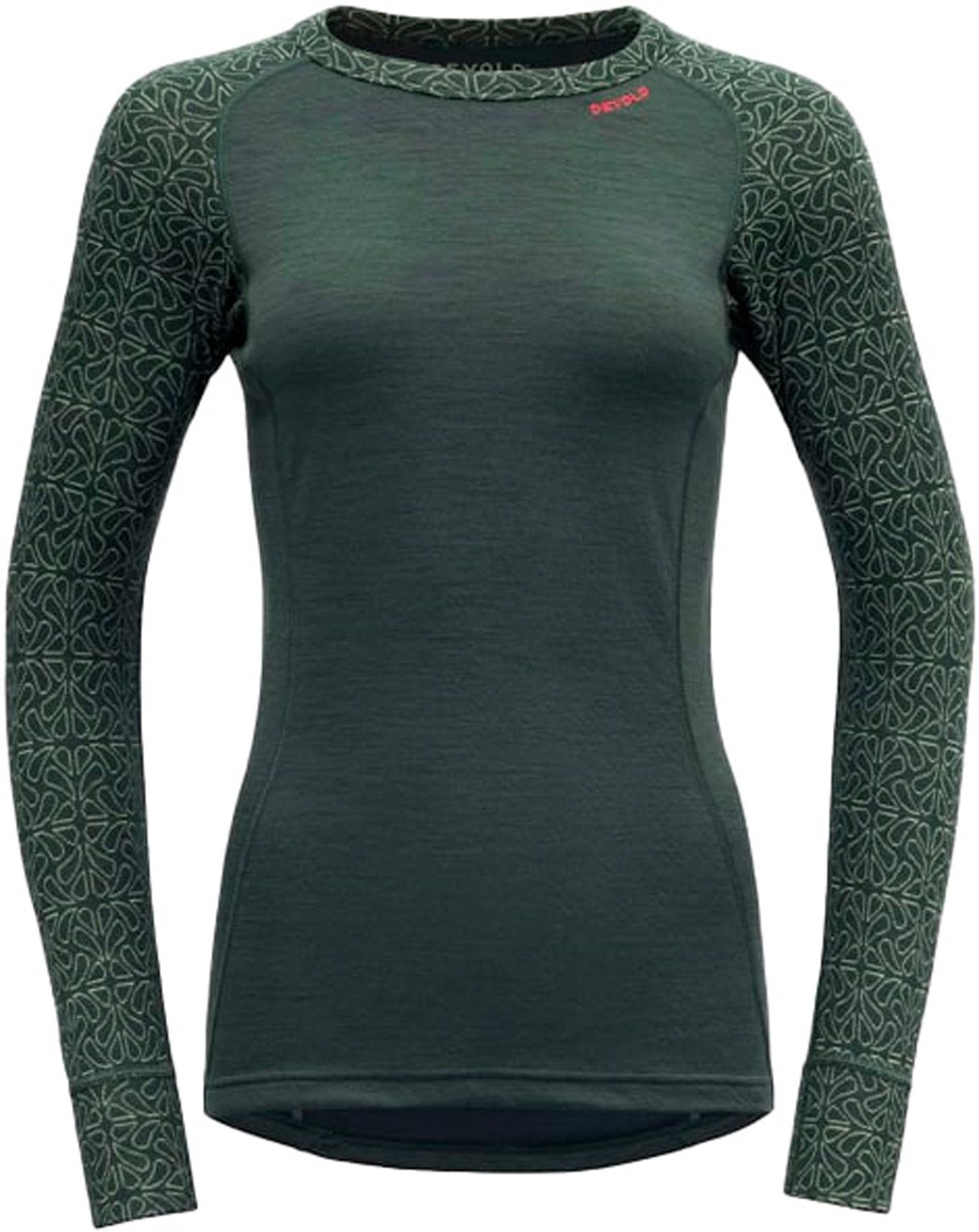 Le T-shirt thermique Duo Active Merino 205 Shirt Woods femme de Devold conjugue laine mérinos extérieure pour la chaleur et Thermo®Lite intérieur pour l’évacuation de l’humidité lors du ski ou de la randonnée hivernale. Manches raglan, coutures plates et dos allongé garantissent confort et liberté de mouvement sans irritation.