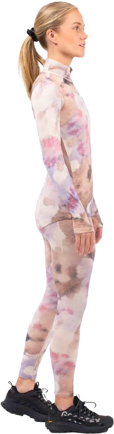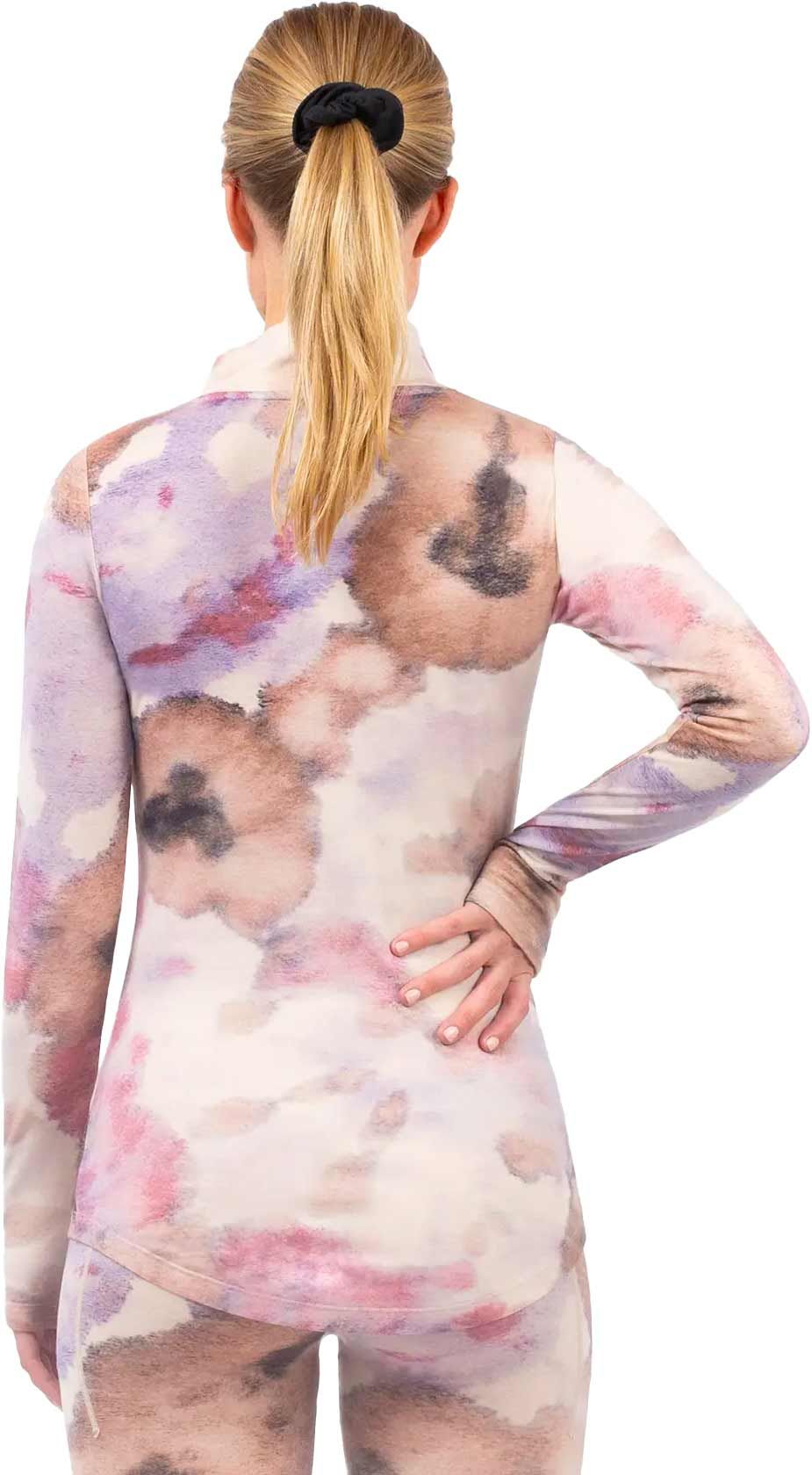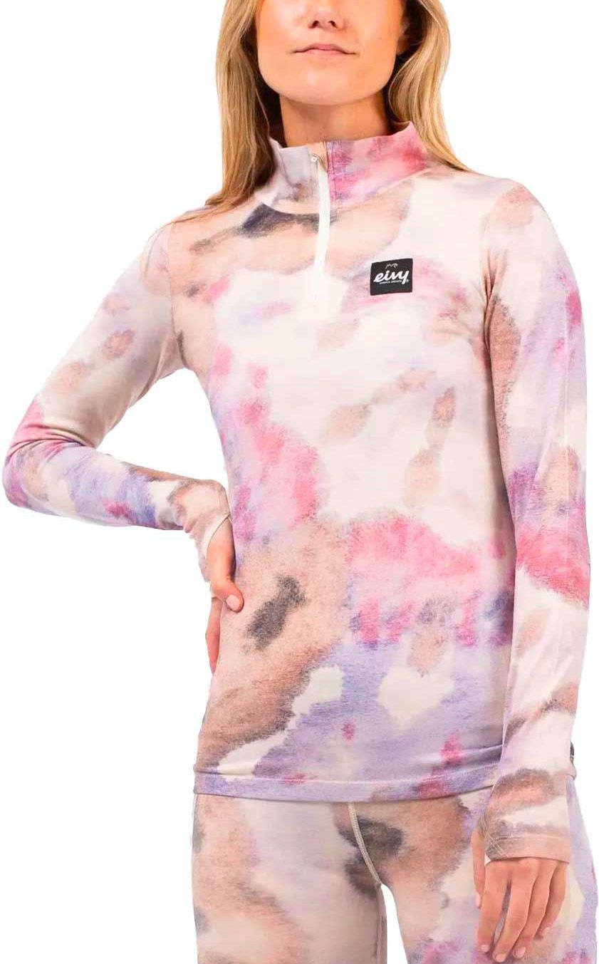 Sous-vêtement technique Eivy Journey Merino Wool Top Aquarelle femme en laine mérinos Oeko-Tex®, chaleur respirante, séchage rapide, col demi-zippé, passe-pouces et dos allongé.