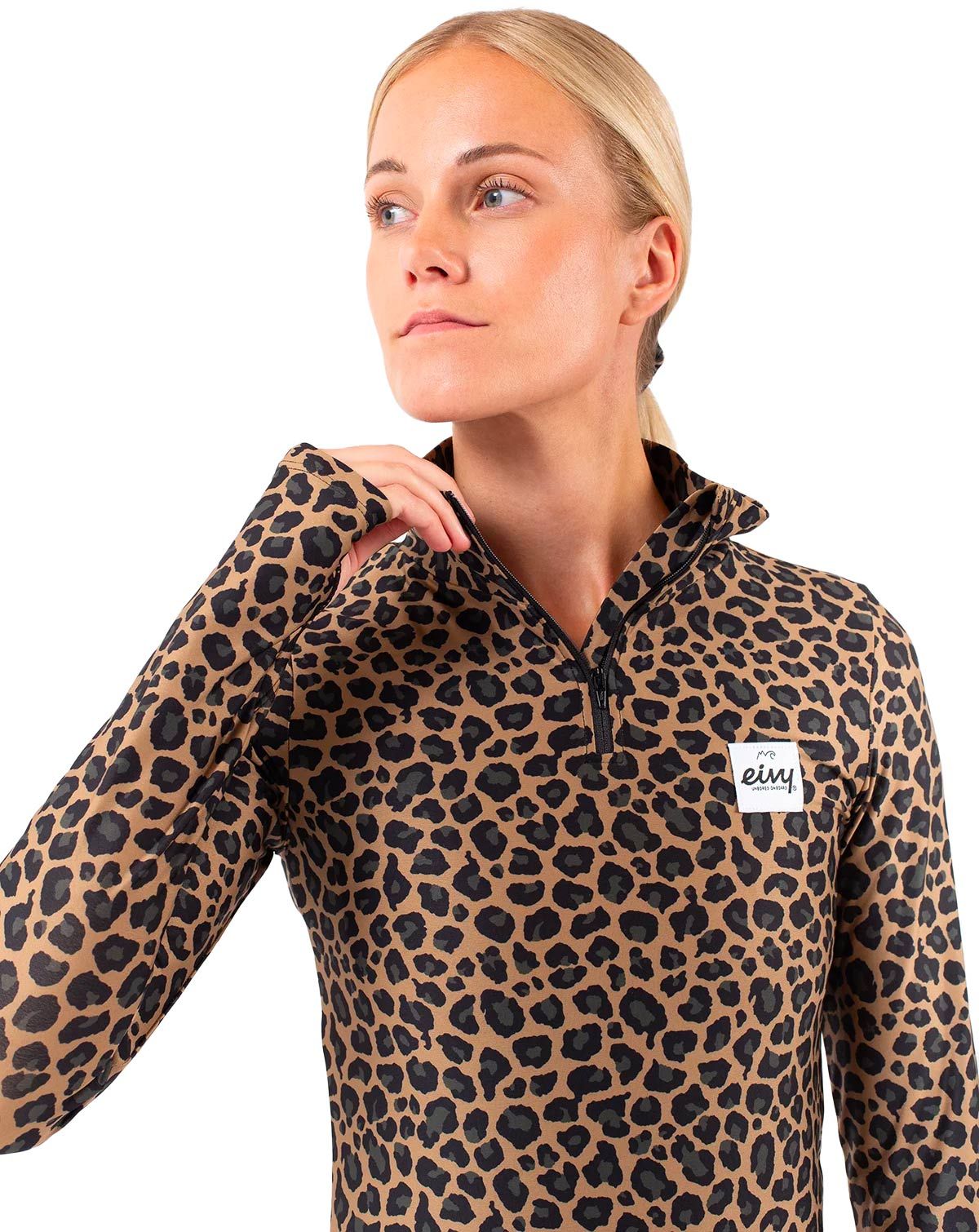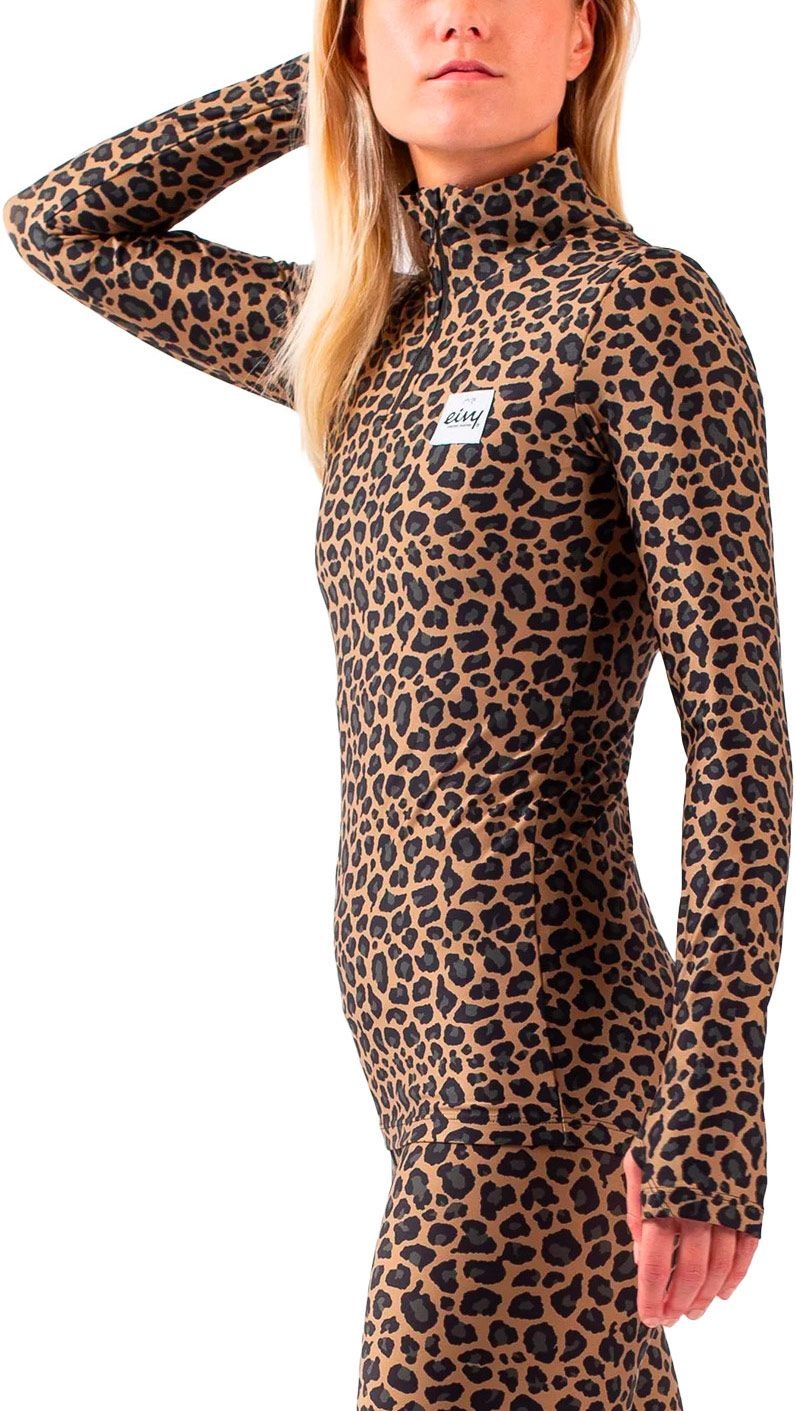Sous-vêtement technique femme Eivy Journey Top Leopard en polyester recyclé OEKO-TEX®, évacue l’humidité, sèche vite, 4-way stretch et coutures plates pour un confort total sur pistes et voyages.