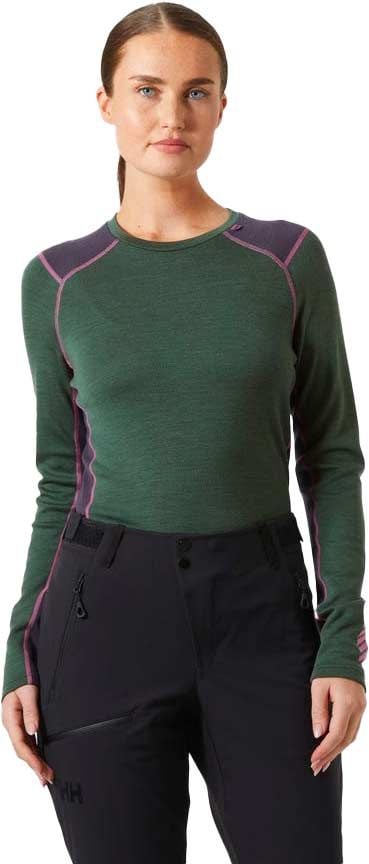 Helly Hansen Lifa Merino Midweight Crew Jungle Green est une première couche femme thermique alliant laine mérinos et fibres LIFA® pour une régulation thermique naturelle et une protection anti-odeurs. Coutures plates, tissu non irritant et construction double couche offrent confort, chaleur et durabilité par temps froid.