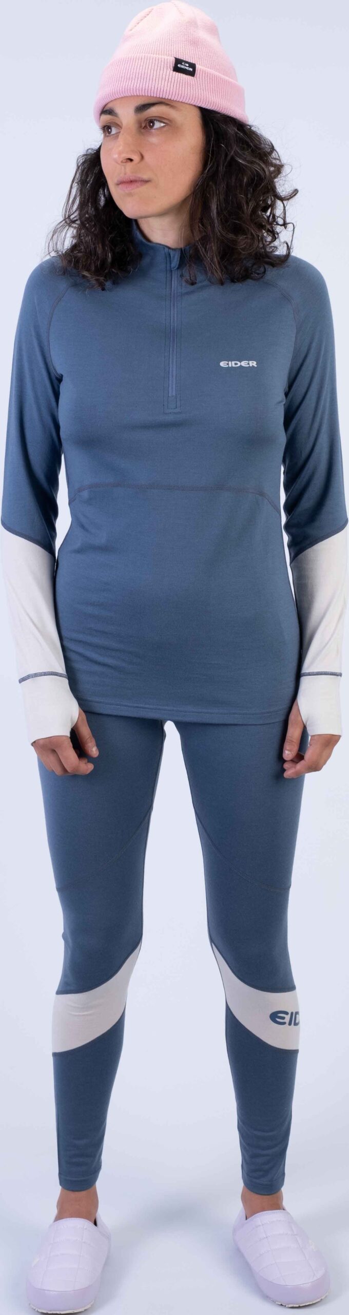 Sous-vêtement thermique EIDER Sarenne Merino Half Zip femme en laine mérinos 4 way stretch, respirante et anti-odeurs, avec col demi-zip, manches raglan et coutures plates pour chaleur et liberté de mouvement au ski.