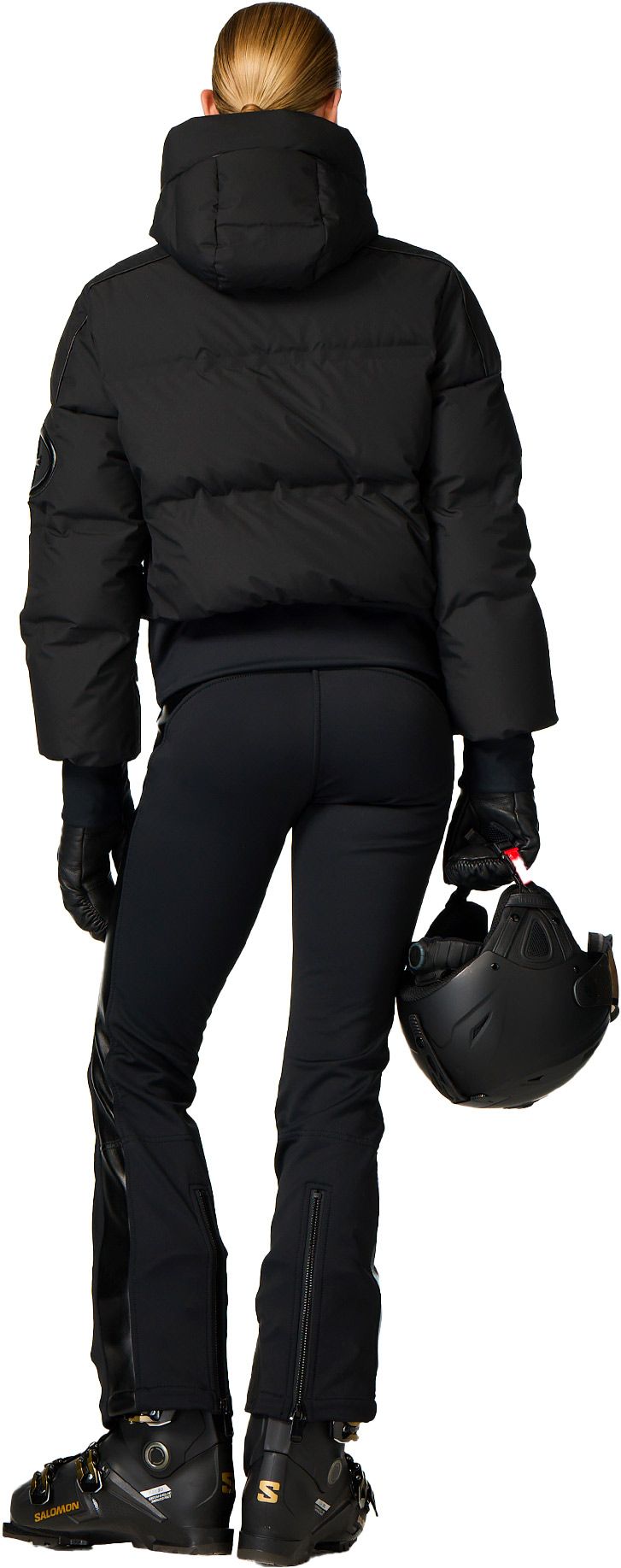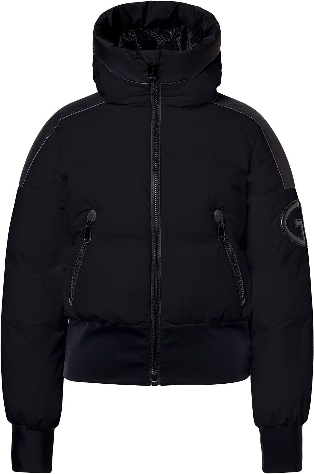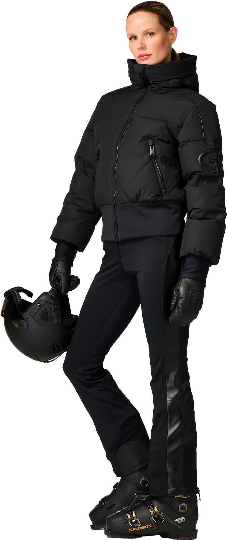 Doudoune de ski courte Goldberg Aurora Black pour femme, en duvet de canard, imperméable, respirante et doublée chaude recyclée anti-odeurs pour le confort sur les pistes.