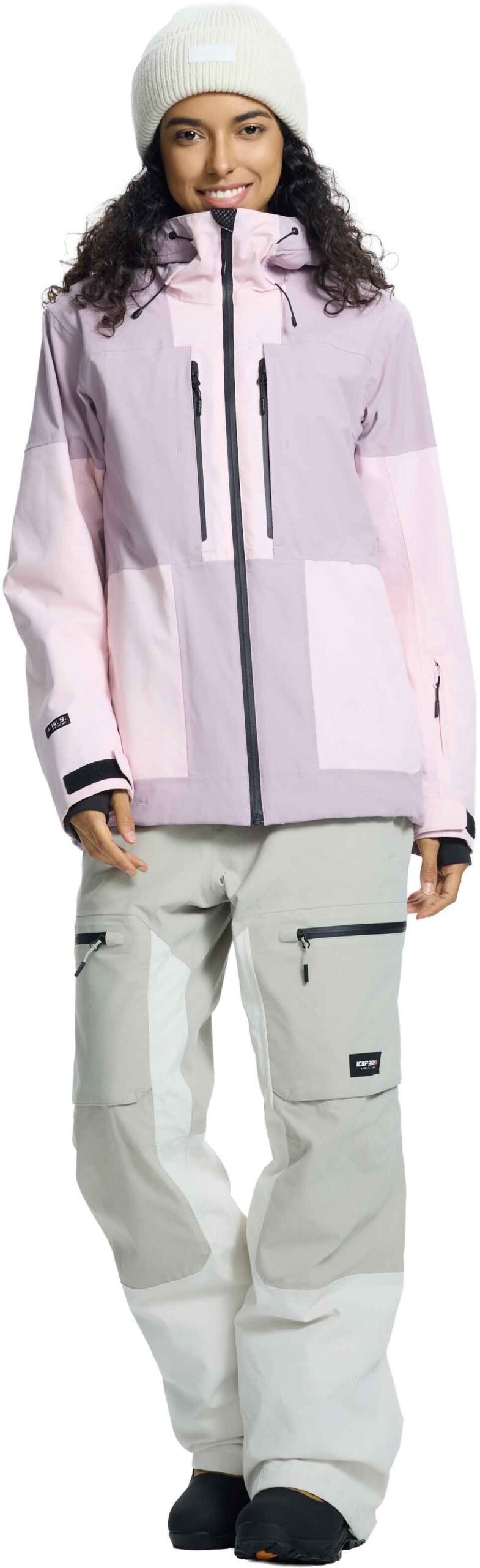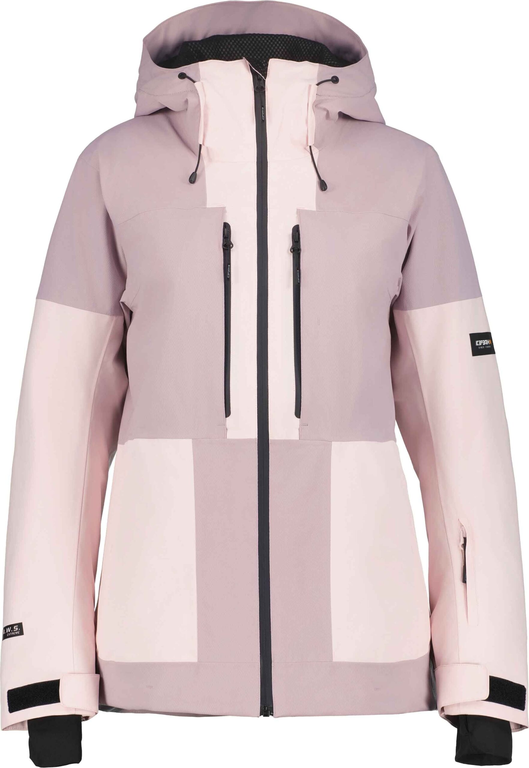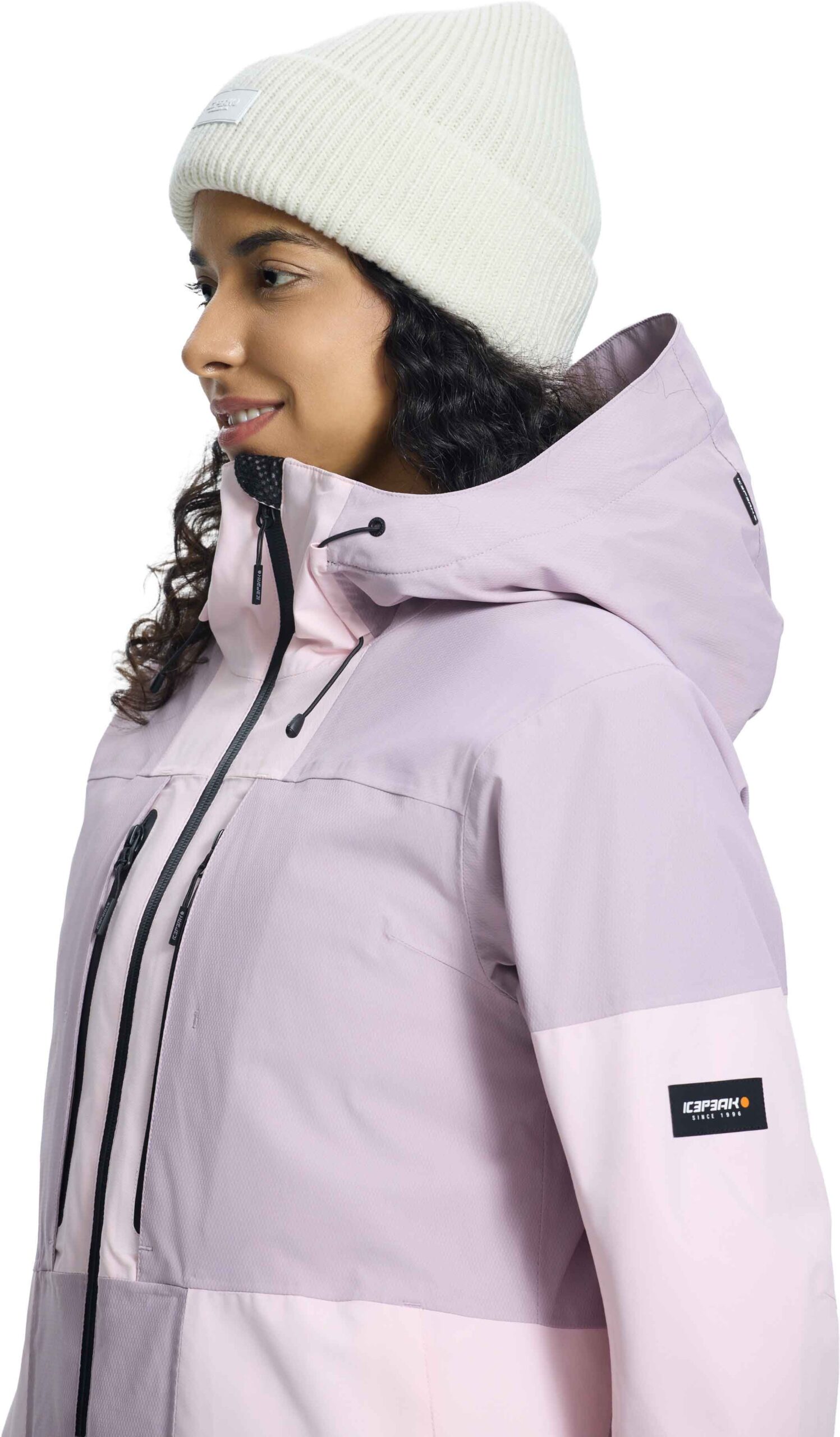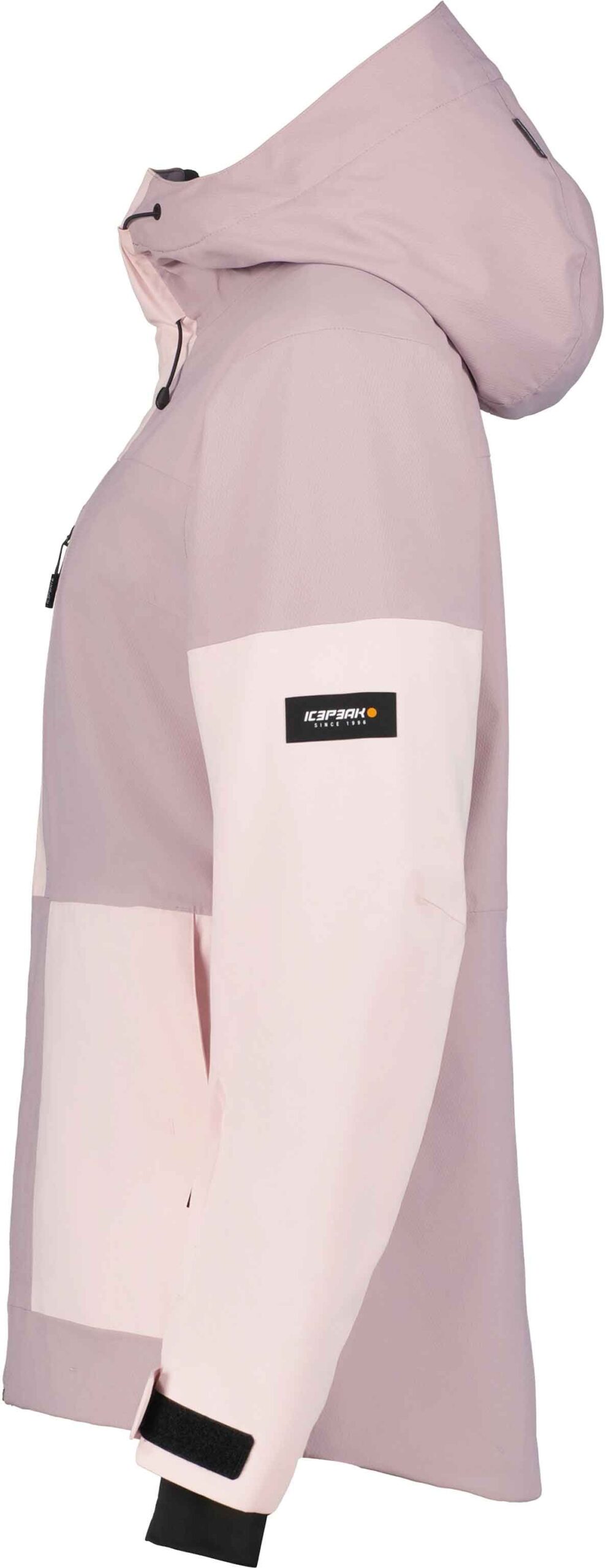 Veste de ski femme Icepeak Cavour Rose, 2 couches stretch 4D, membrane imperméable-respirante, coutures étanches et jupe pare-neige silicone pour chaleur et liberté de mouvement sur pistes.