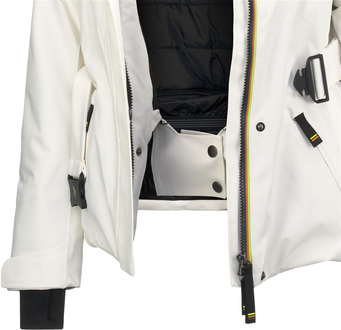 Veste de ski K-Way La Chevril Micro Twill 2 Layers White Gardenia pour femme, 2 couches imperméables, isolation PrimaLoft® Eco, capuche amovible, coutures thermo-soudées, coupe-vent et déperlante.
