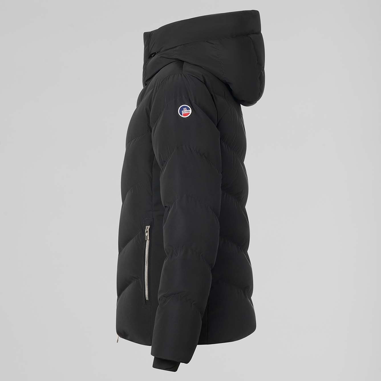 Veste de ski Fusalp Delphine II Noir femme, membrane Perfortex™ imperméable, isolation Dupont® Sorona® respirante, jupe pare-neige et finition satinée.