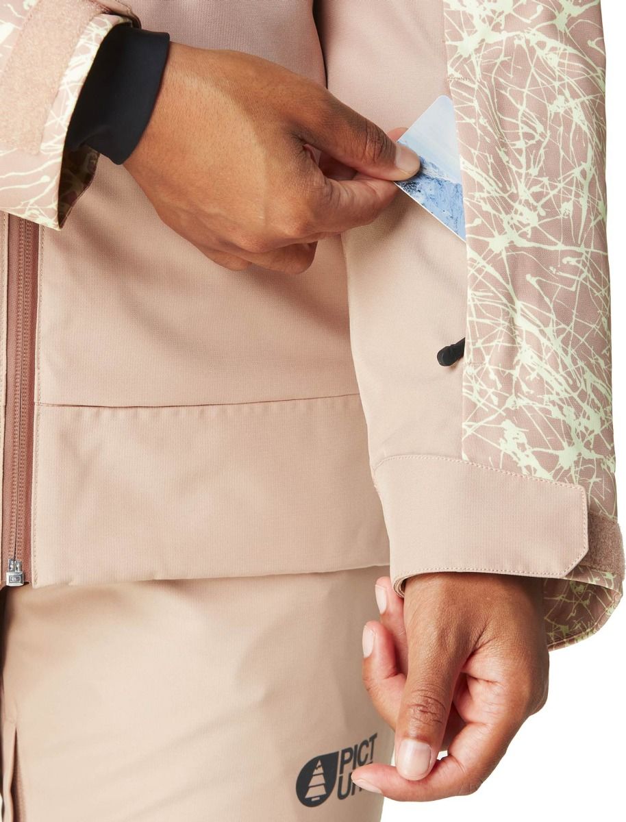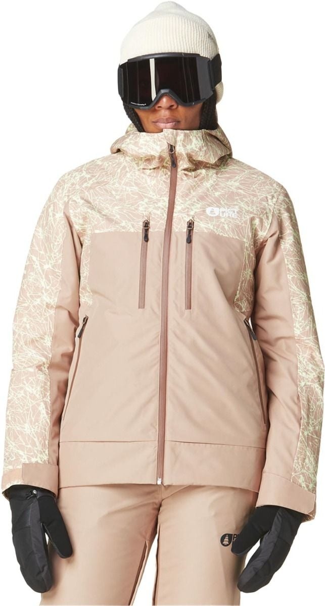 Veste de ski femme Picture Organic Clothing Exa Jkt Textury Print Roebuck, membrane Dryplay 20K/20K, coutures collées, isolation Thermal STD et ventilations zippées pour imperméabilité, respirabilité et chaleur sur tous les terrains.