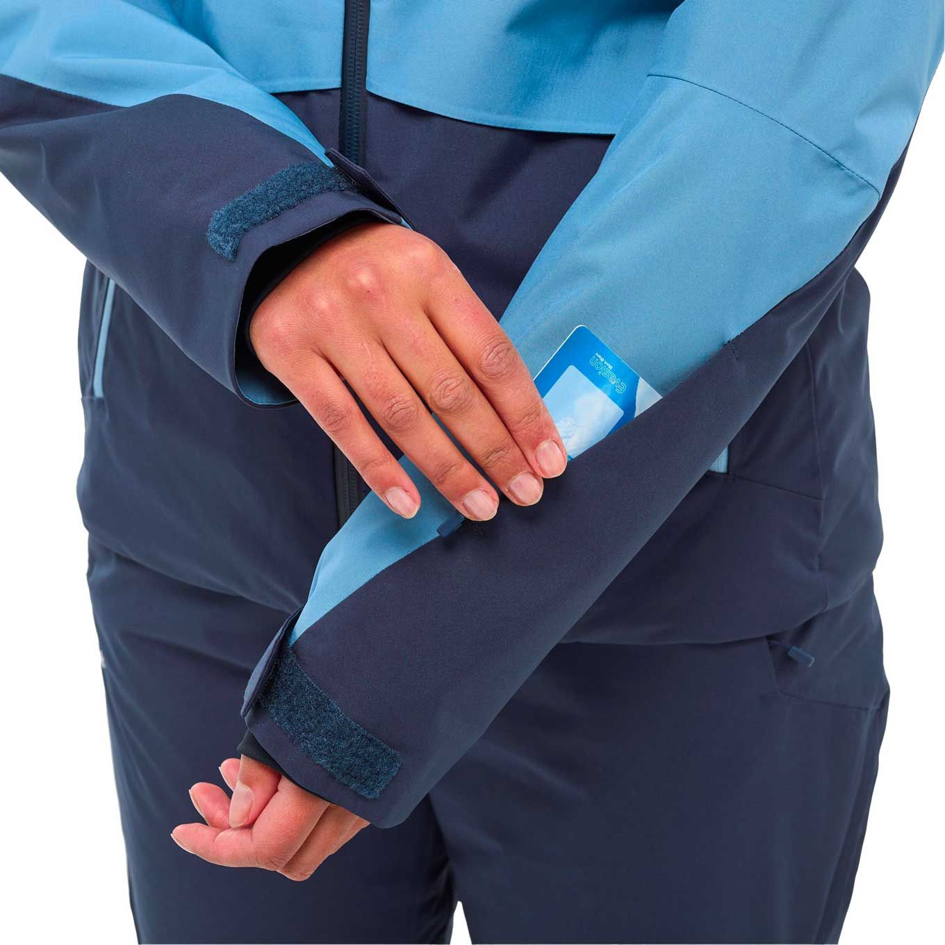 - 1 poche zippée au bas de la manche, pour le forfait