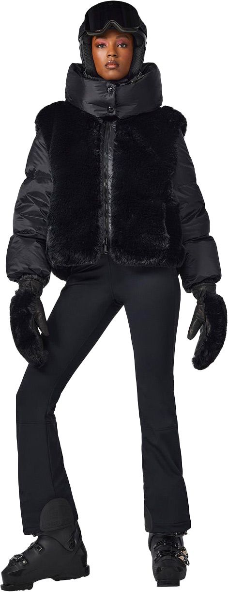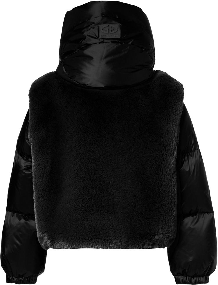 La doudoune de ski courte Goldberg La Reine Ski Jacket Gold pour femme conjugue duvet de canard, membrane imper-respirante et capuche détachable pour chaleur, élégance et protection sur les pistes.
