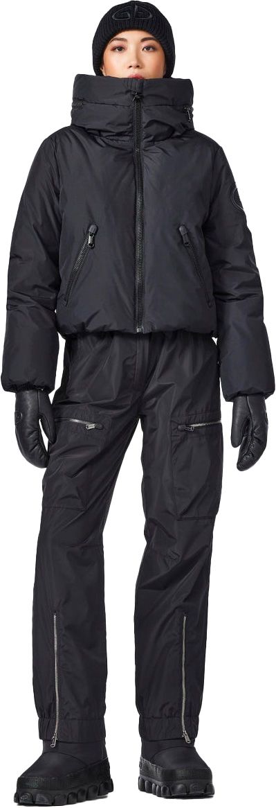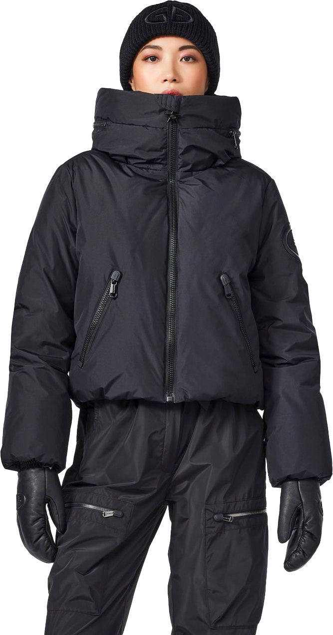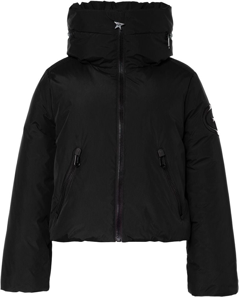 Goldberg Porter Ski Jacket Black femme : doudoune courte en duvet de canard, imperméable, respirante, avec capuche amovible, jupe pare-neige et doublure recyclée anti-odeurs.