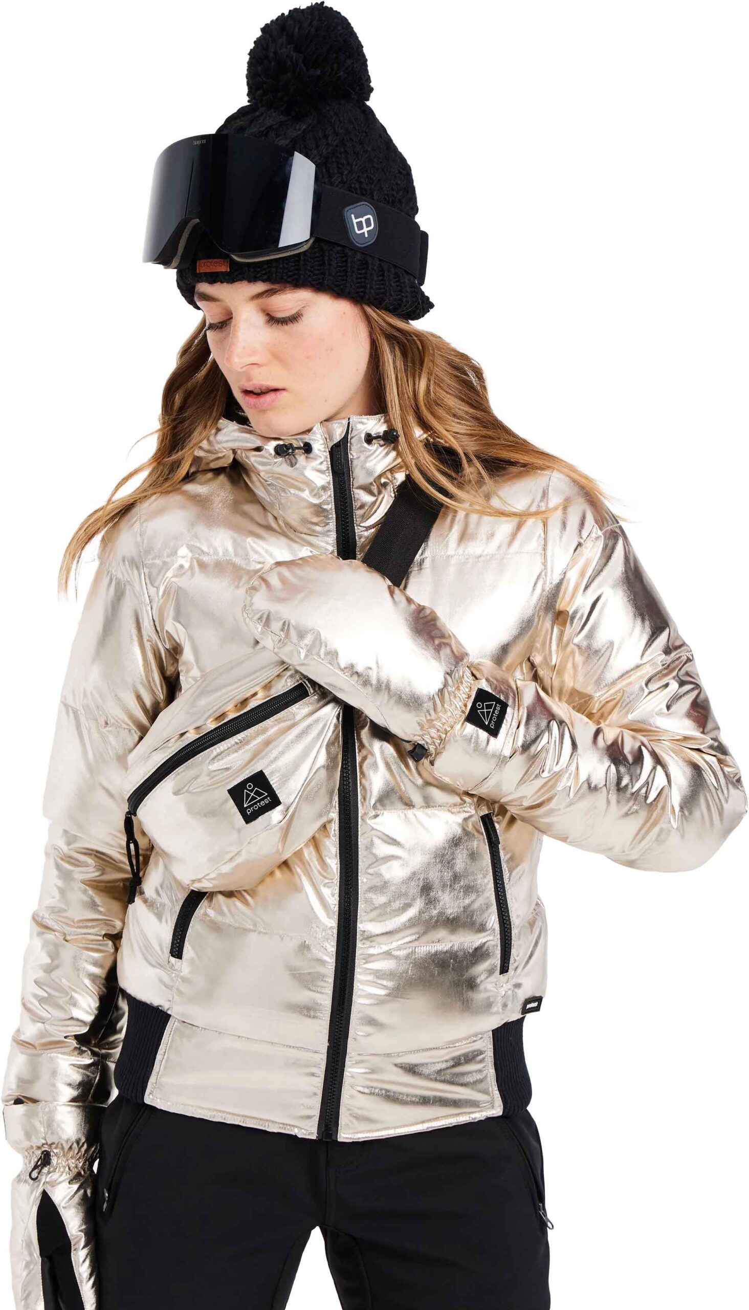 Doudoune de ski femme Protest Prtcortina 24 Snowjacket Metal, imperméable et respirante, avec capuche fixe réglable, taille élastique, 2 poches zippées et poche forfait sur la manche.