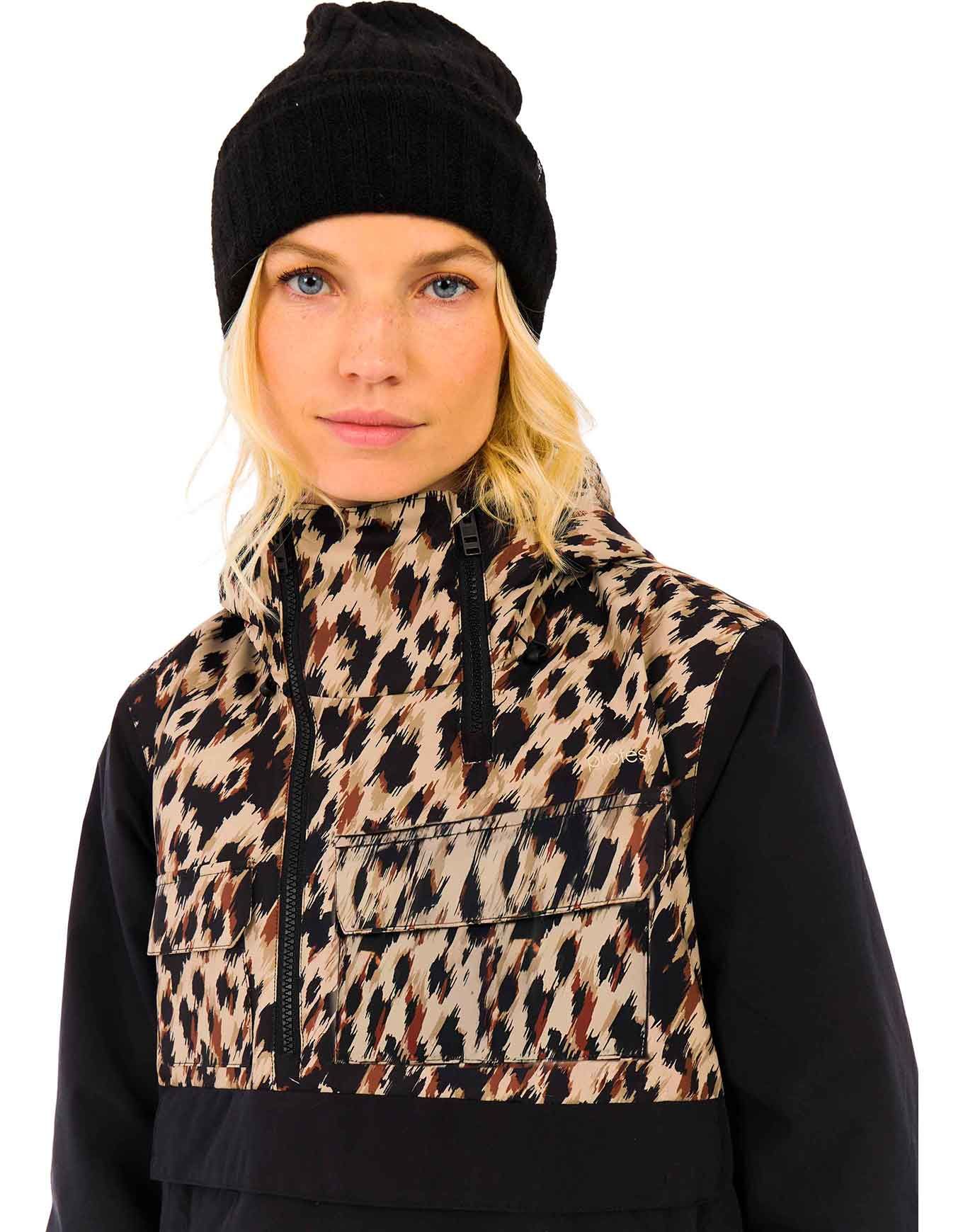 Anorak Protest Prtviper True Black pour femme, en polyester avec finition déperlante 10K sans PFC et coutures scellées, offre coupe ample, jupe pare-neige, ventilation et ajustements pour confort hivernal.