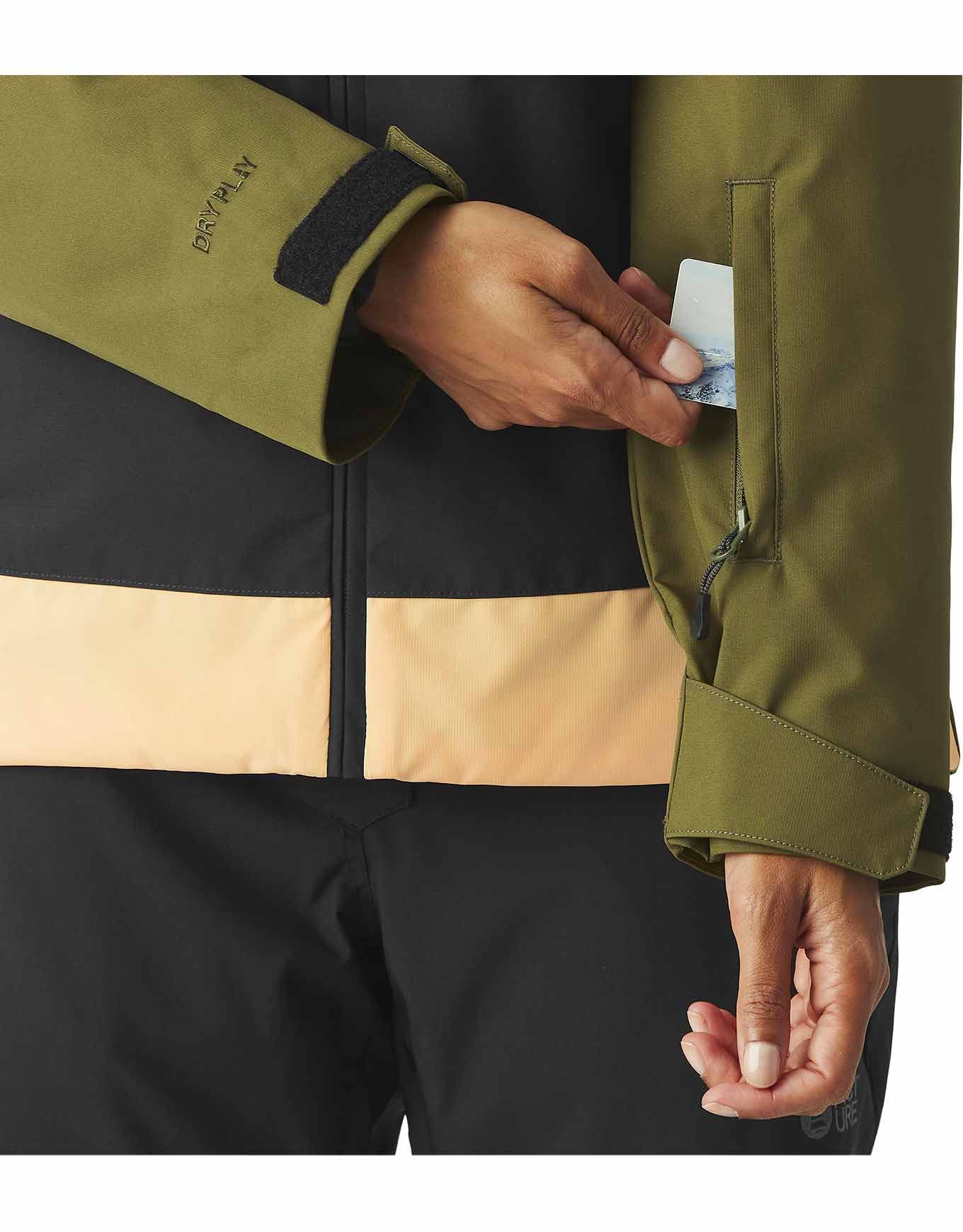 Du côté des fonctionnalités, on trouve sur cette veste une capuche ergonomique, une fermeture zippée intégrale YKK®, ainsi que des zips de ventilation permettant de réguler la température et de multiples poches dont une réservée au forfait de ski. Une jupe pare-neige et un ourlet ajustable par cordon équipent également ce modèle pour un ajustement précis.