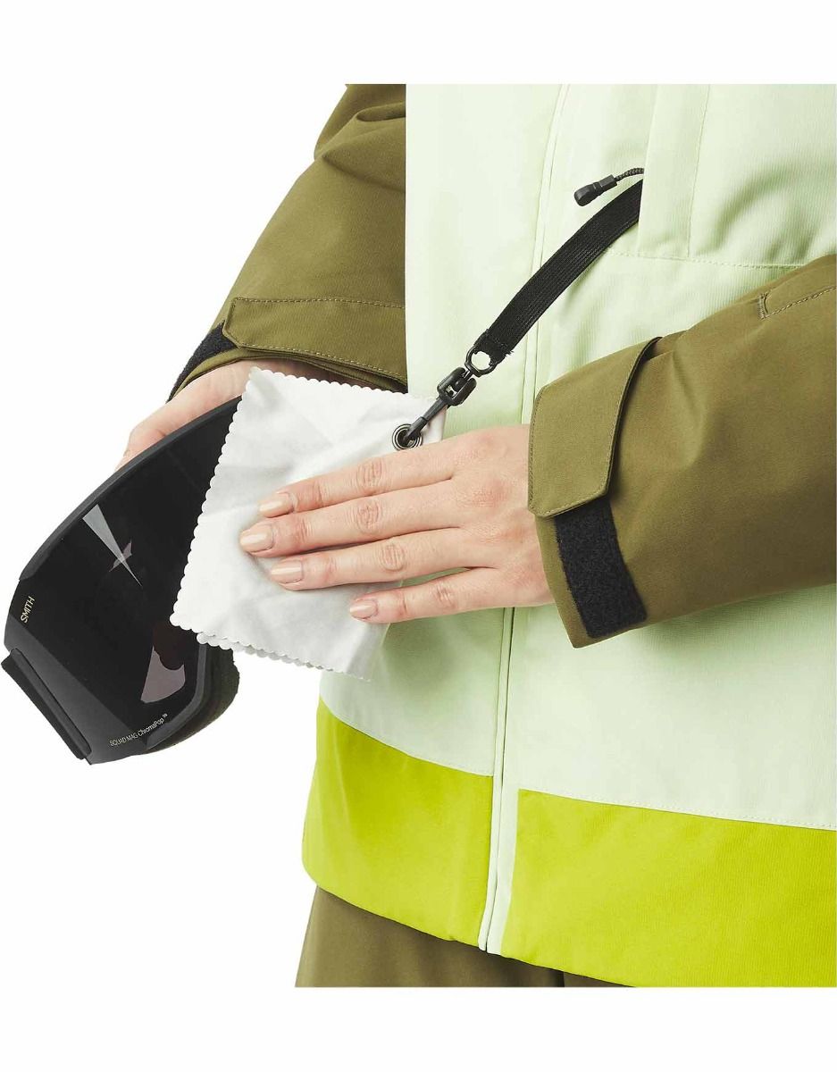Du point de vue fonctionnel, cette veste est dotée d’une capuche ergonomique, d’une fermeture intégrale zippée YKK®, de zips de ventilation permettant la régulation de la température, ainsi que de plusieurs poches dont une spécialement prévue pour le forfait de ski. Une jupe pare-neige et un ourlet réglable par cordon permettent un ajustement précis.