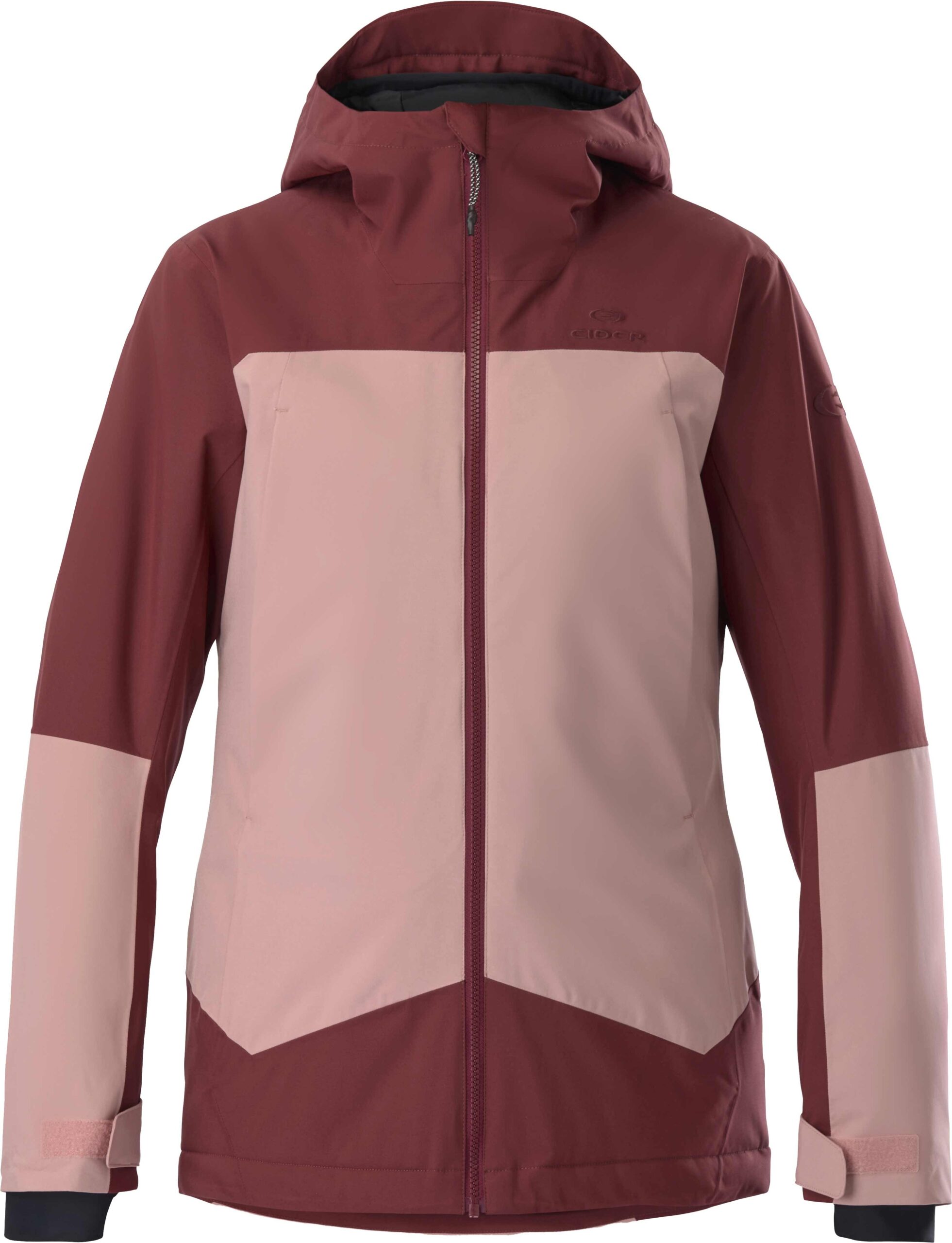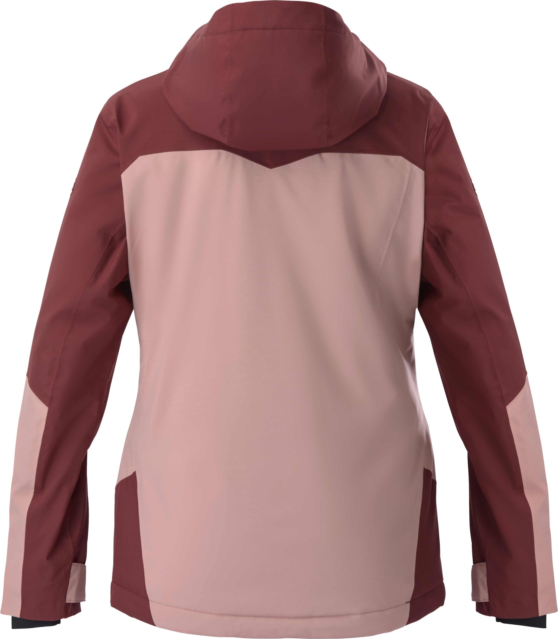 Veste isolante EIDER Arias Insulated Jkt Pink Marble femme, membrane Defender imperméable-respirante, isolation polyester recyclé différenciée, coudes articulés, capuche réglable, poches skipass et masque, manchons stretch avec passe-pouce et jupe pare-neige.