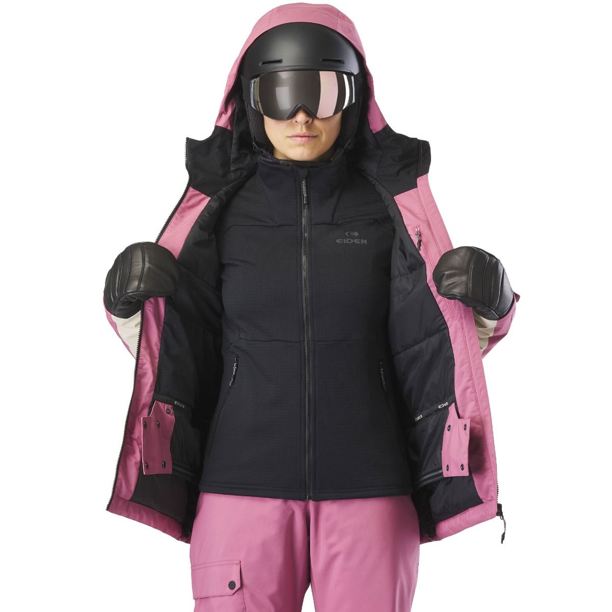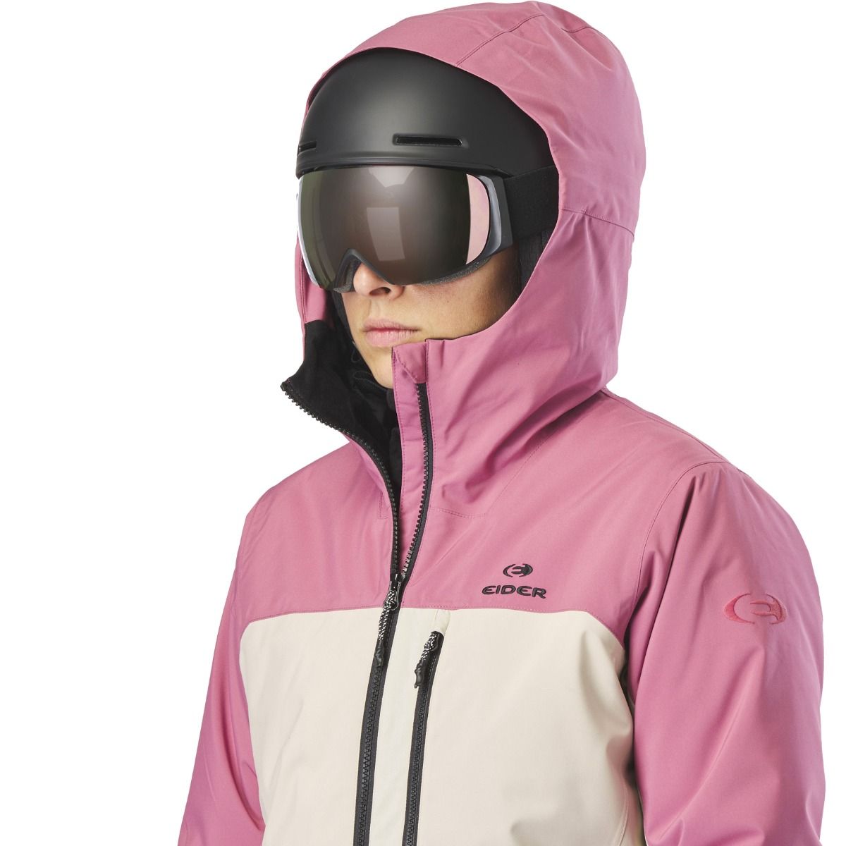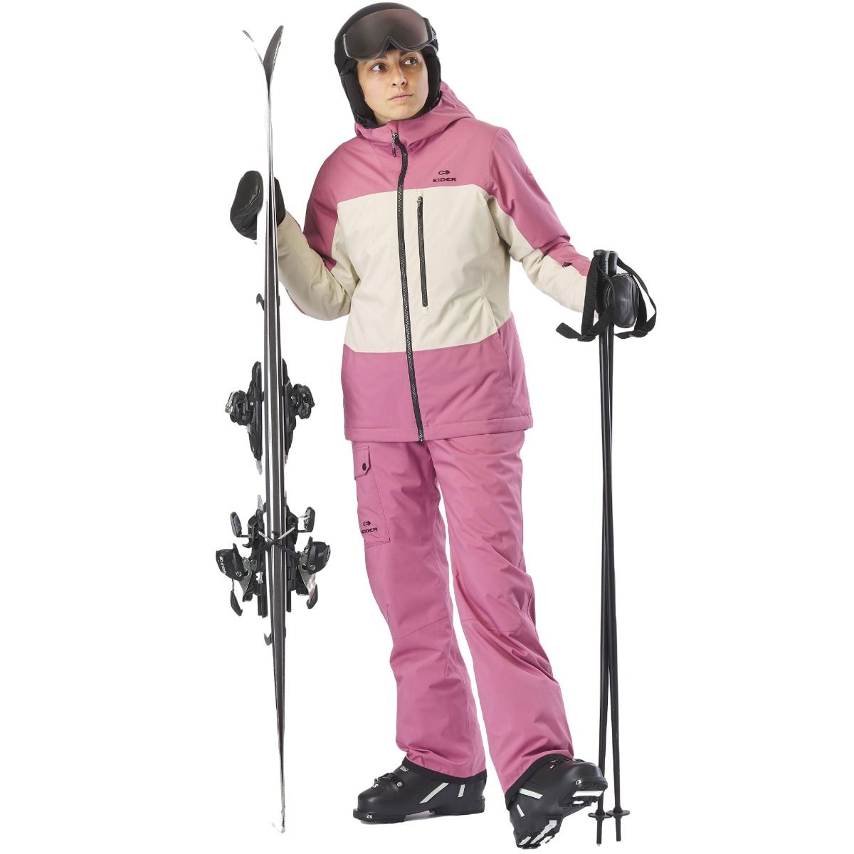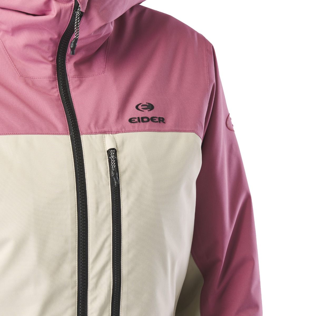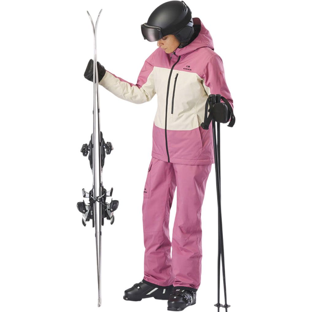 Veste ski femme EIDER Becca 2L Insulated Jkt Deep Mauve, membrane Defender imperméable-respirante, isolation synthétique stratégique, coupe féminine avec capuche casque, jupe pare-neige et manchons stretch.