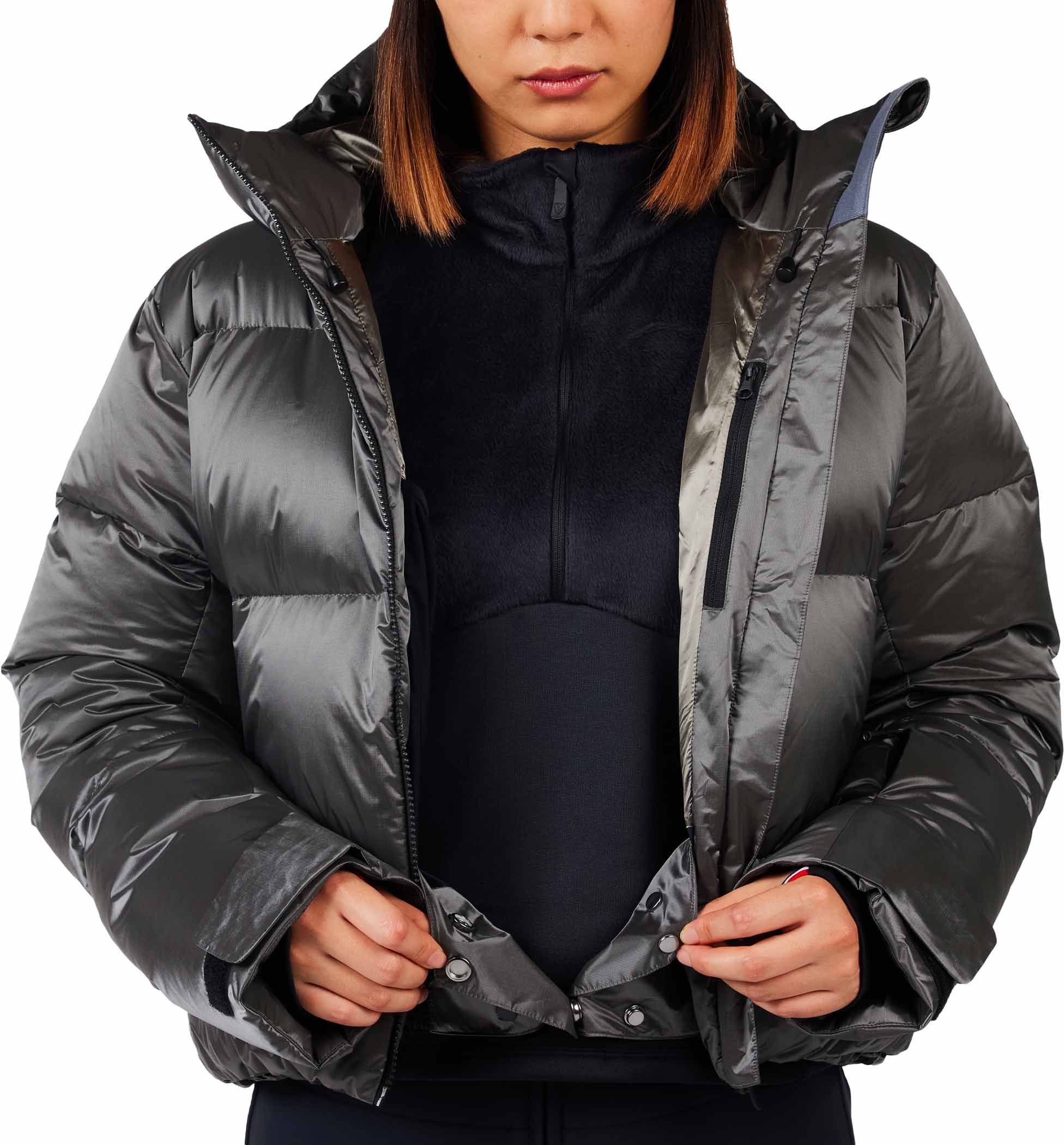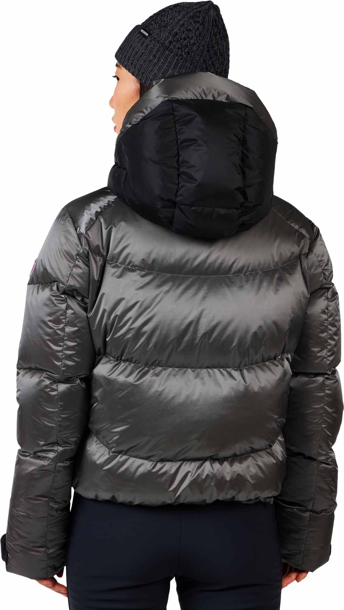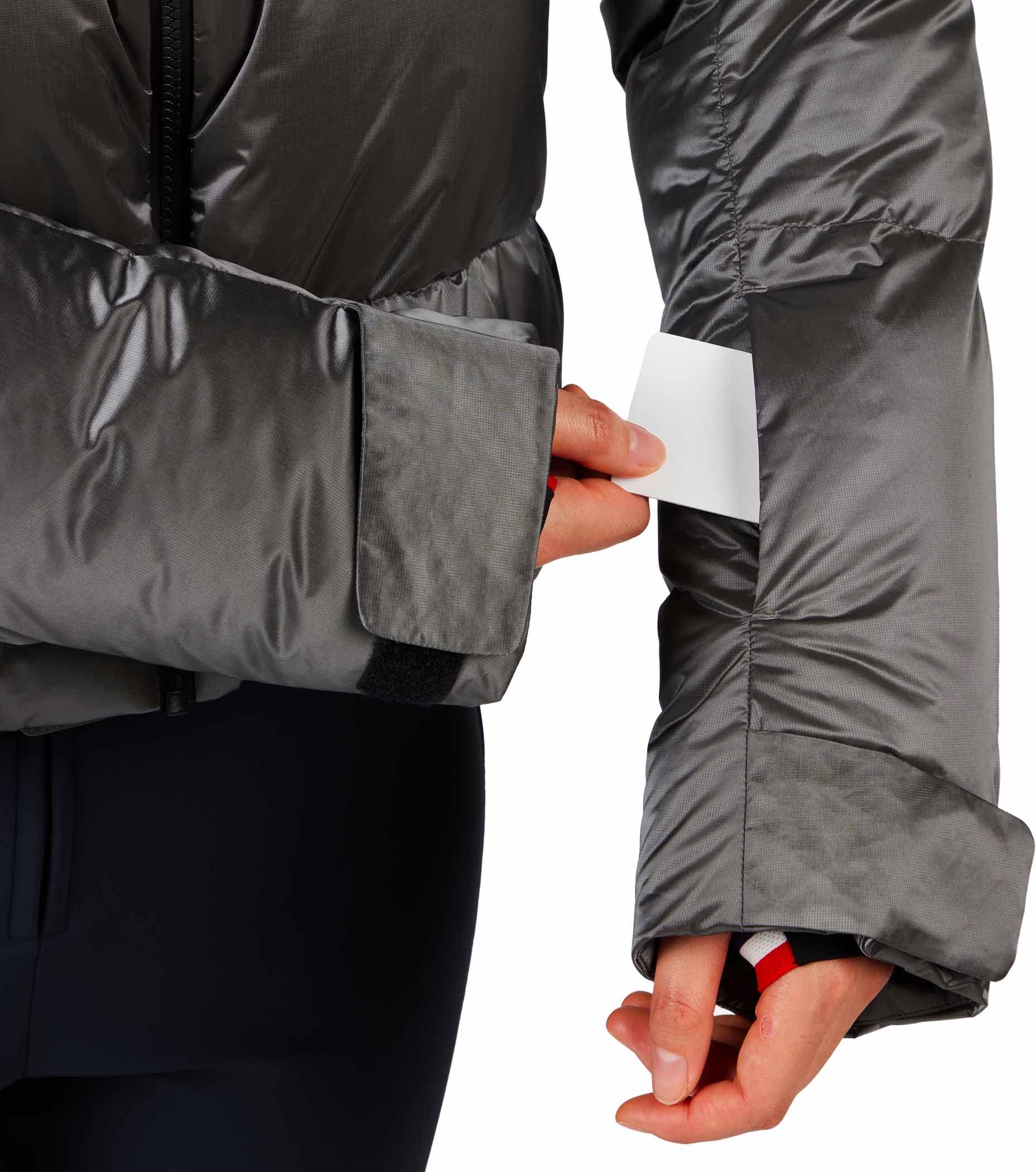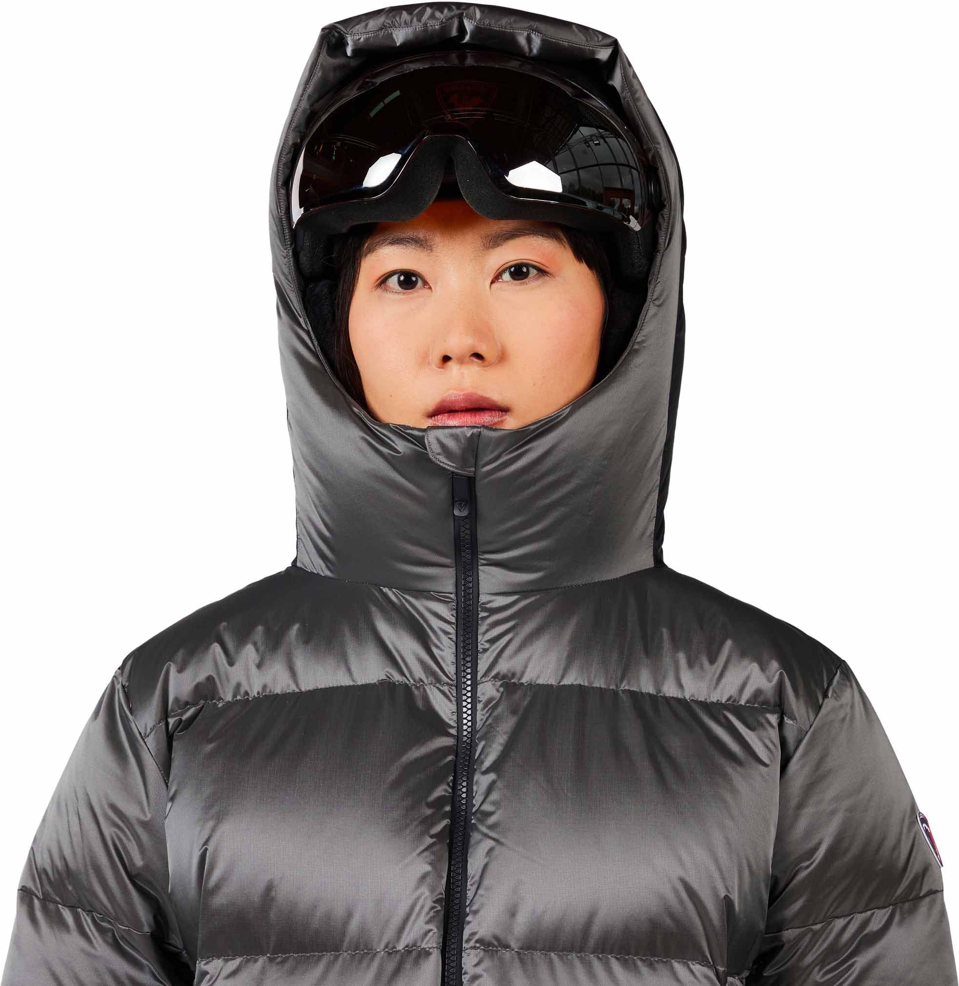 La veste de ski Rossignol Daille Down Jacket Silver femme associe isolation duvet Duvet du Faubourg®, membrane imper-respirante et shell ripstop pour chaleur légère et protection neige. Jupe pare-neige, poche forfait, poignets passe-pouces, coupe classique, déperlant écologique sans PFC.