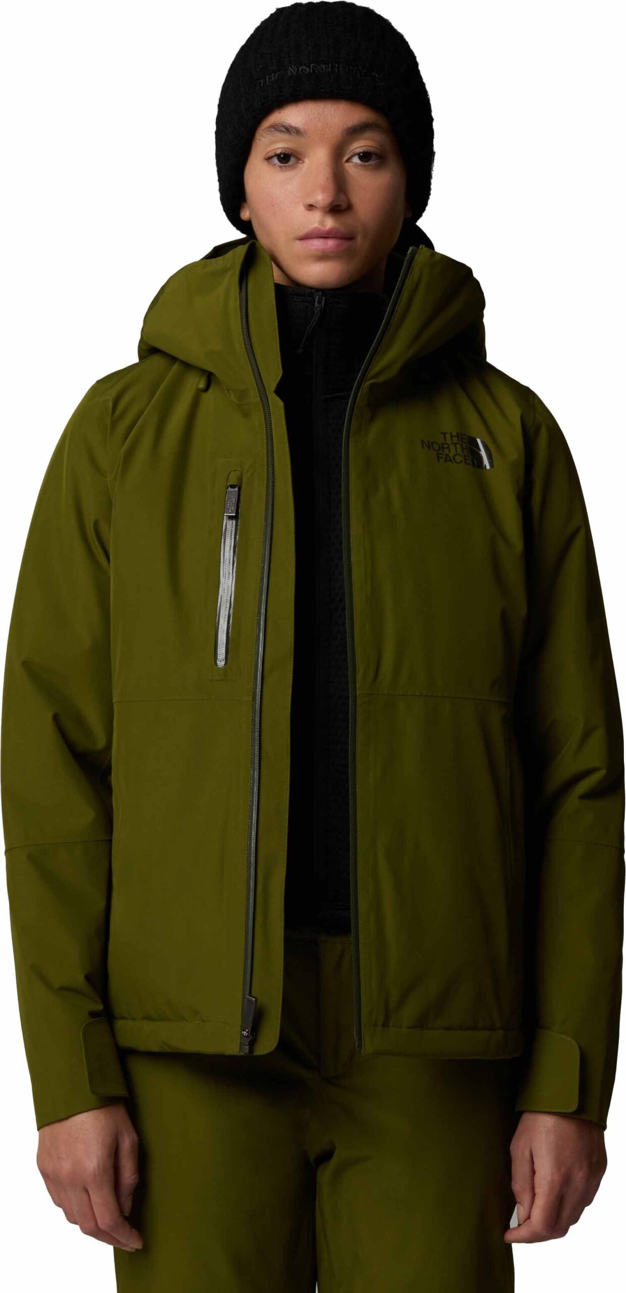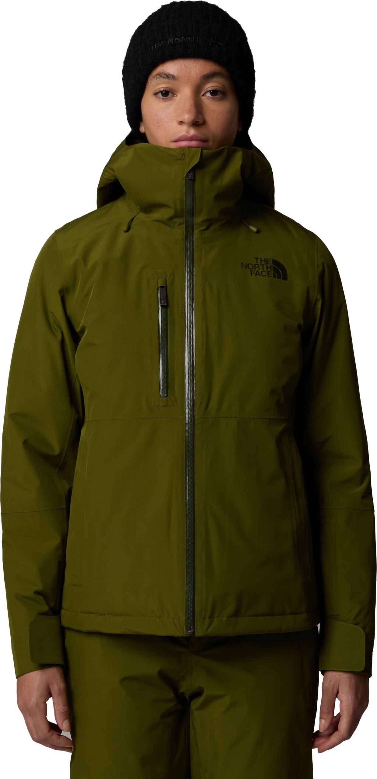 The North Face Descendit Jacket Forest Olive veste de ski femme imperméable DryVent™, isolation Heatseeker™ Eco, capuche casque, jupe pare-neige.