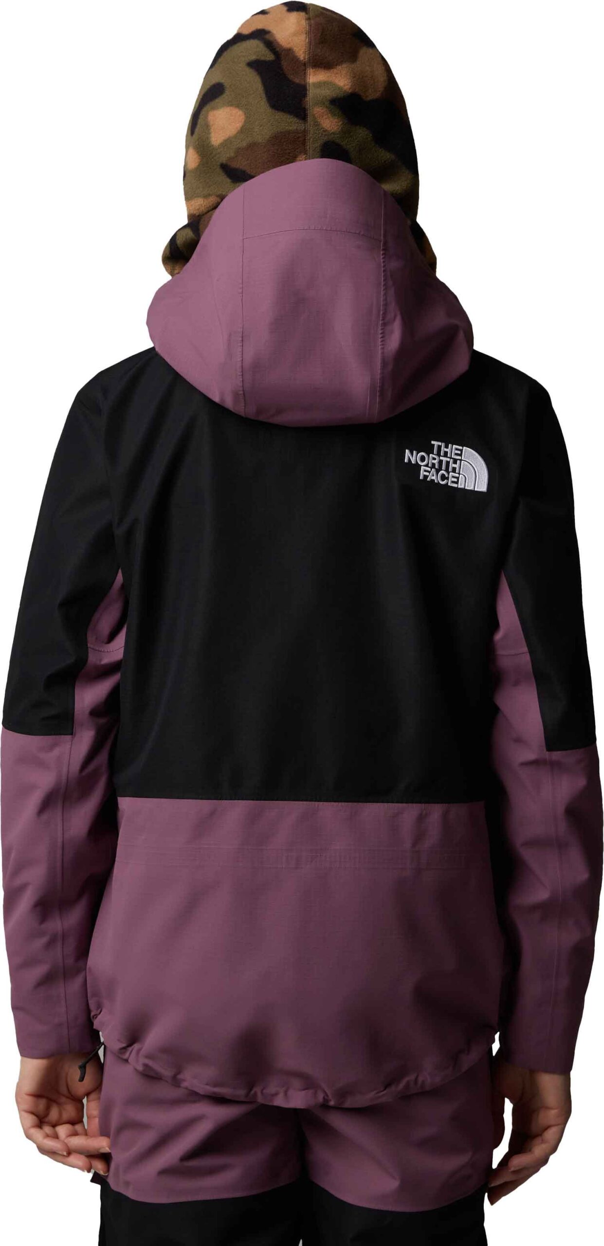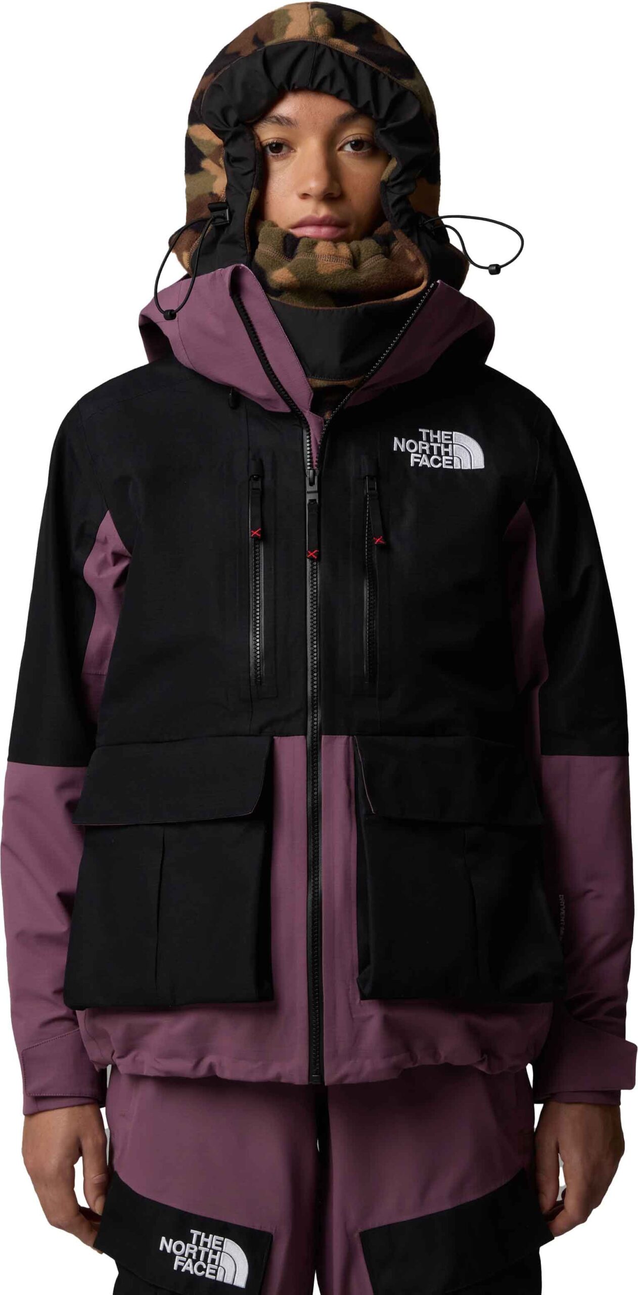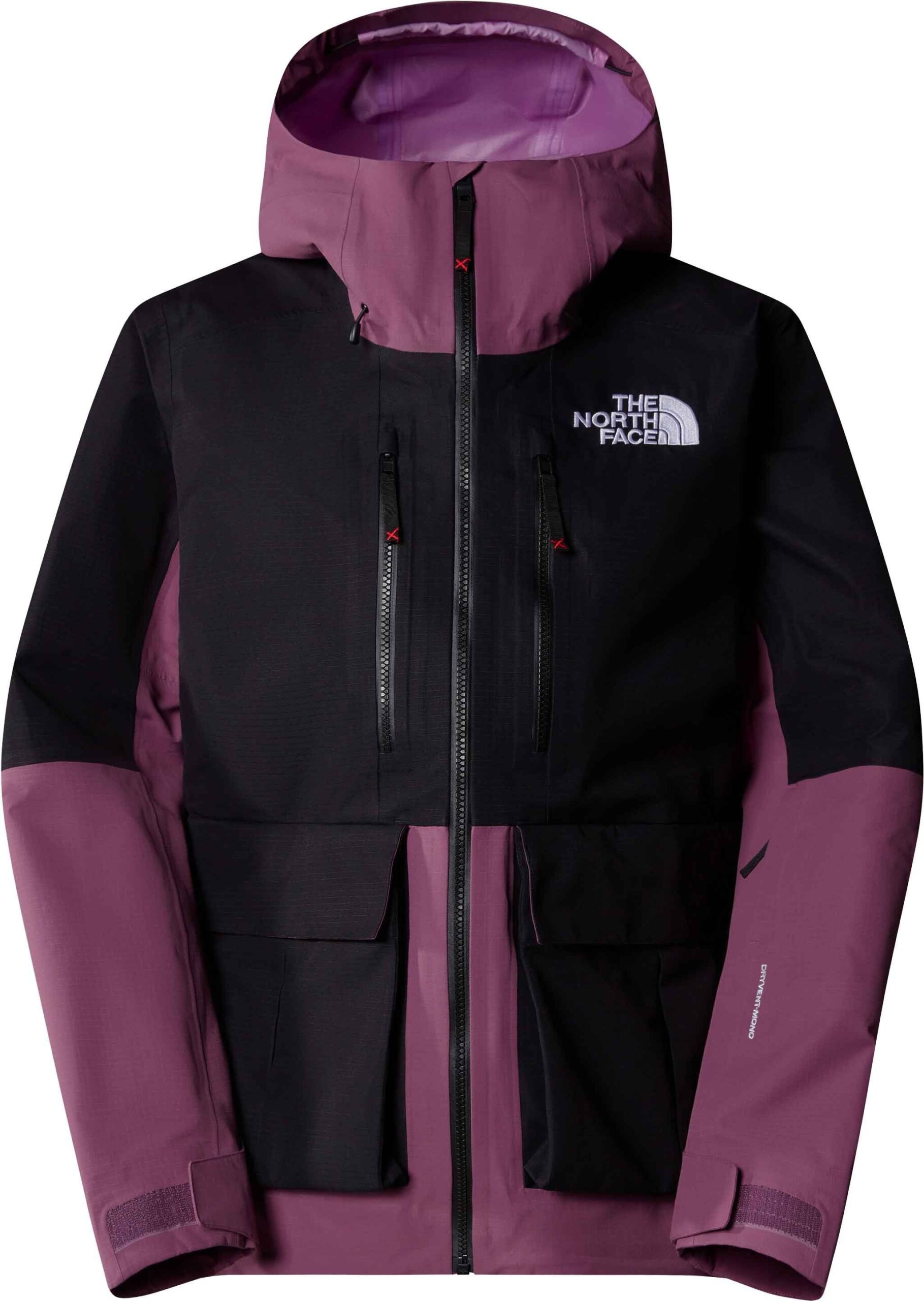 Veste de ski The North Face Dragline Jacket femme TNF Black/Midnight Mauve, coupe-vent imper-respirante DryVent™, capuche casque, jupe pare-neige, fentes aérations.