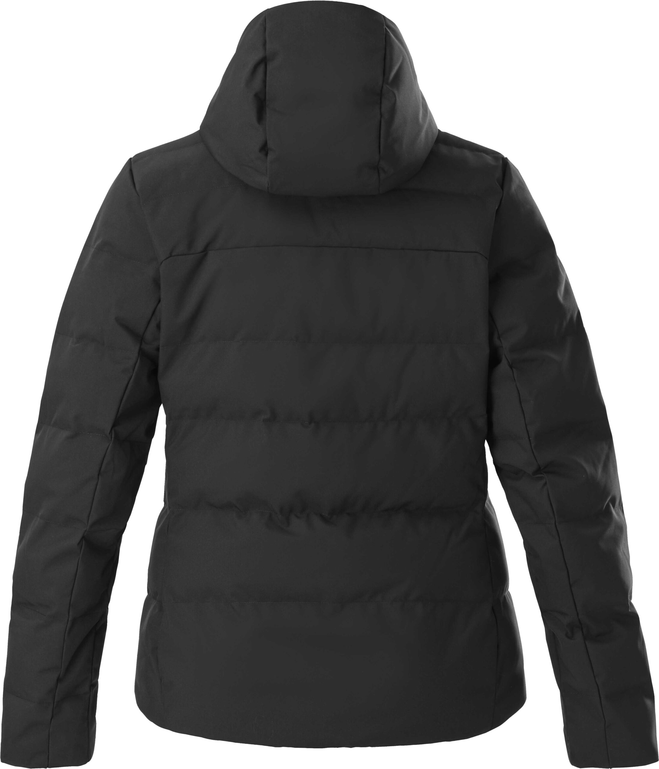 Doudoune de ski EIDER Meije 2L Down Jkt noire pour femme, membrane Defender® imperméable-respirante, isolation polyester recyclé, capuche réglable, jupe pare-neige stretch et poches ski.