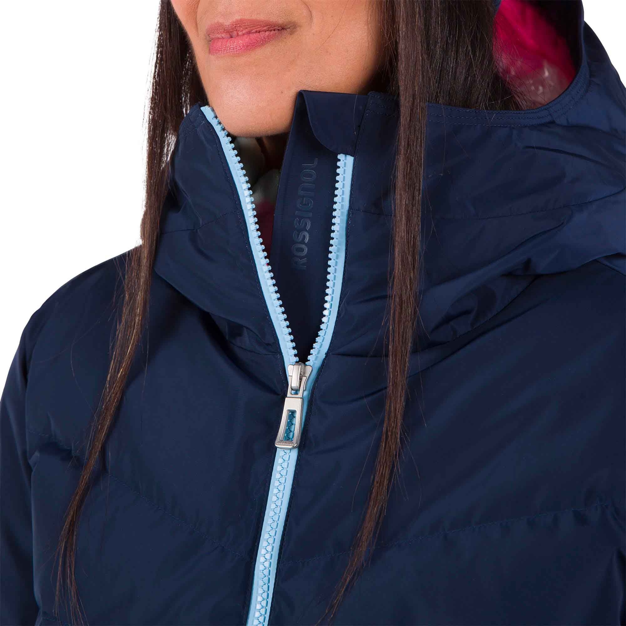 La doudoune Rossignol Wispile Puffy Jkt Dark Navy pour homme allie look sport chic et performances : membrane imper-respirante, isolation Primaloft® légère, capuche casque, poches sécurisées et zips ventilation.