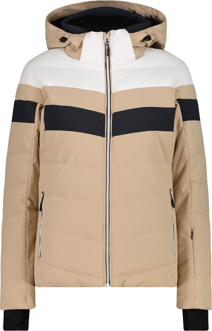 Veste de ski CMP Man Jacket Zip Hood Mechanical Stretch Sesamo homme, imperméable Clima Protect, isolation Feel Warm Flat, capuche amovible, coutures scellées.