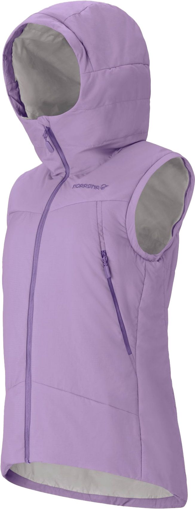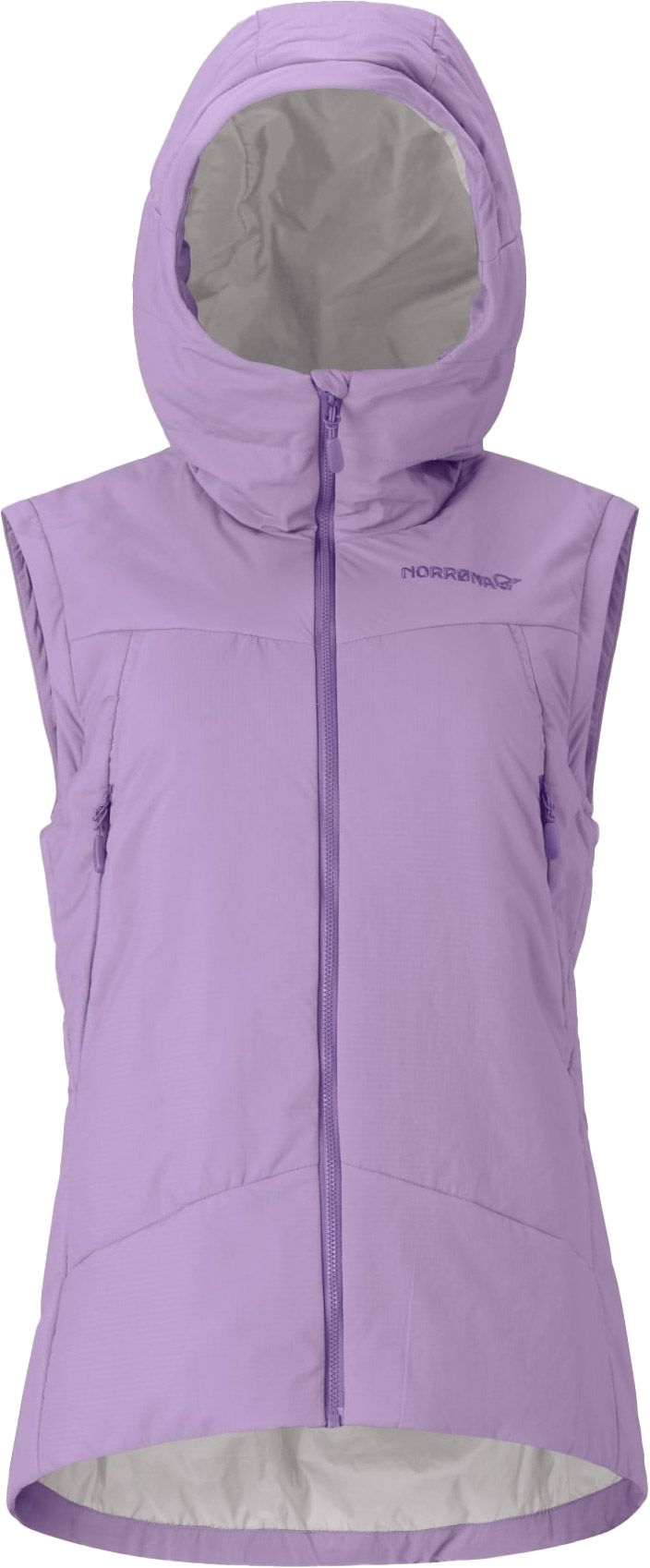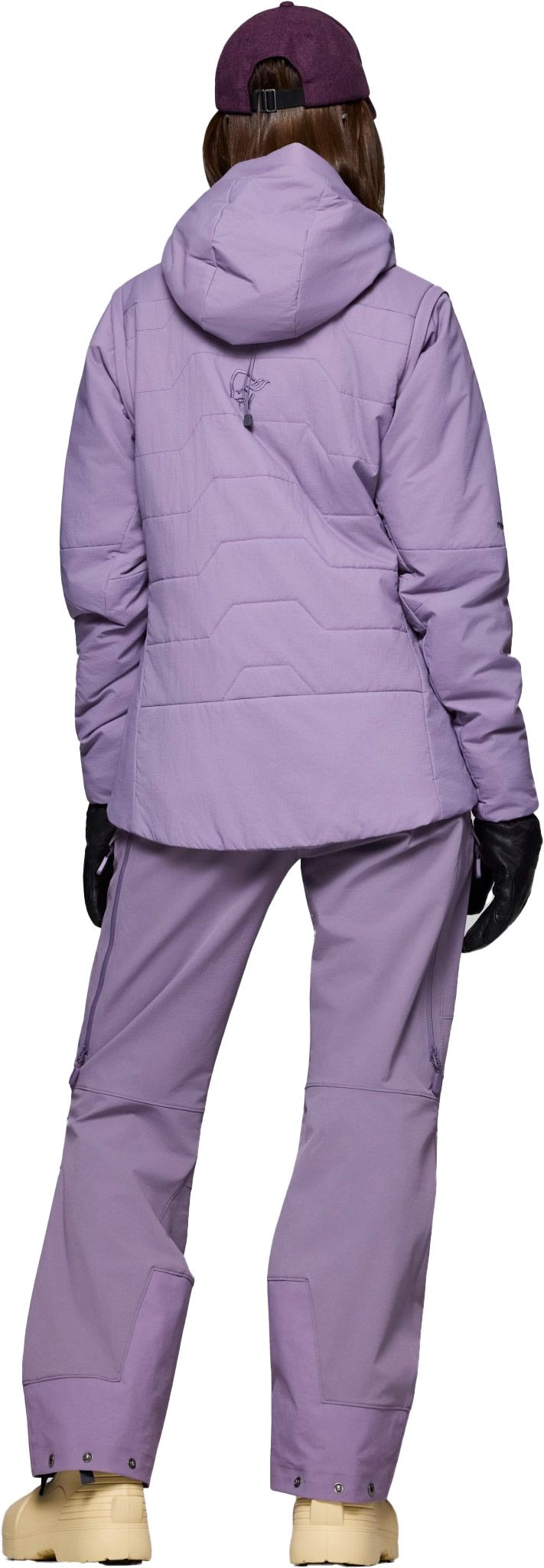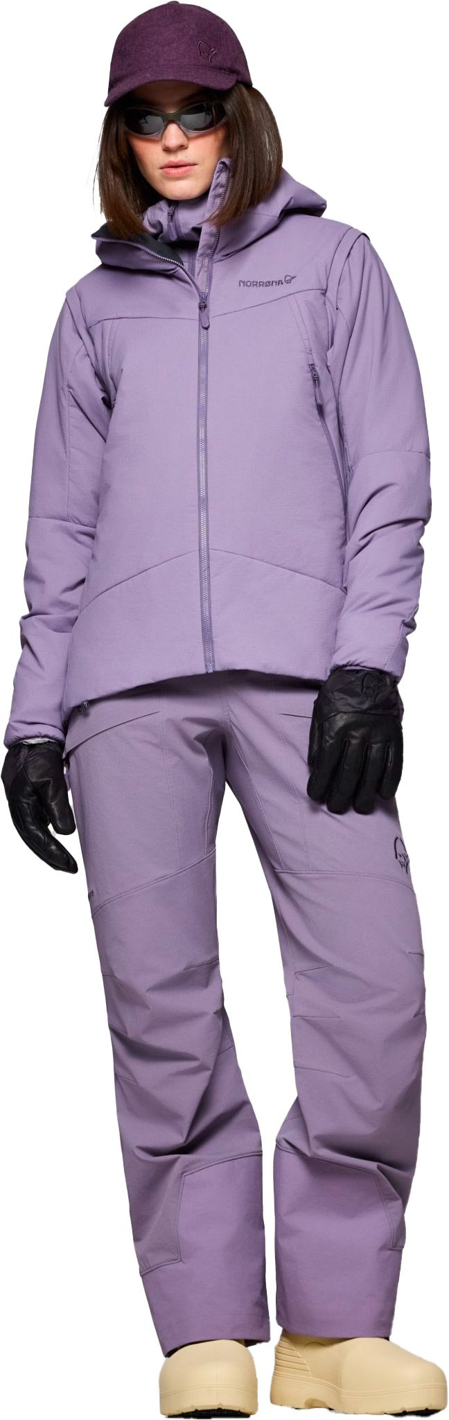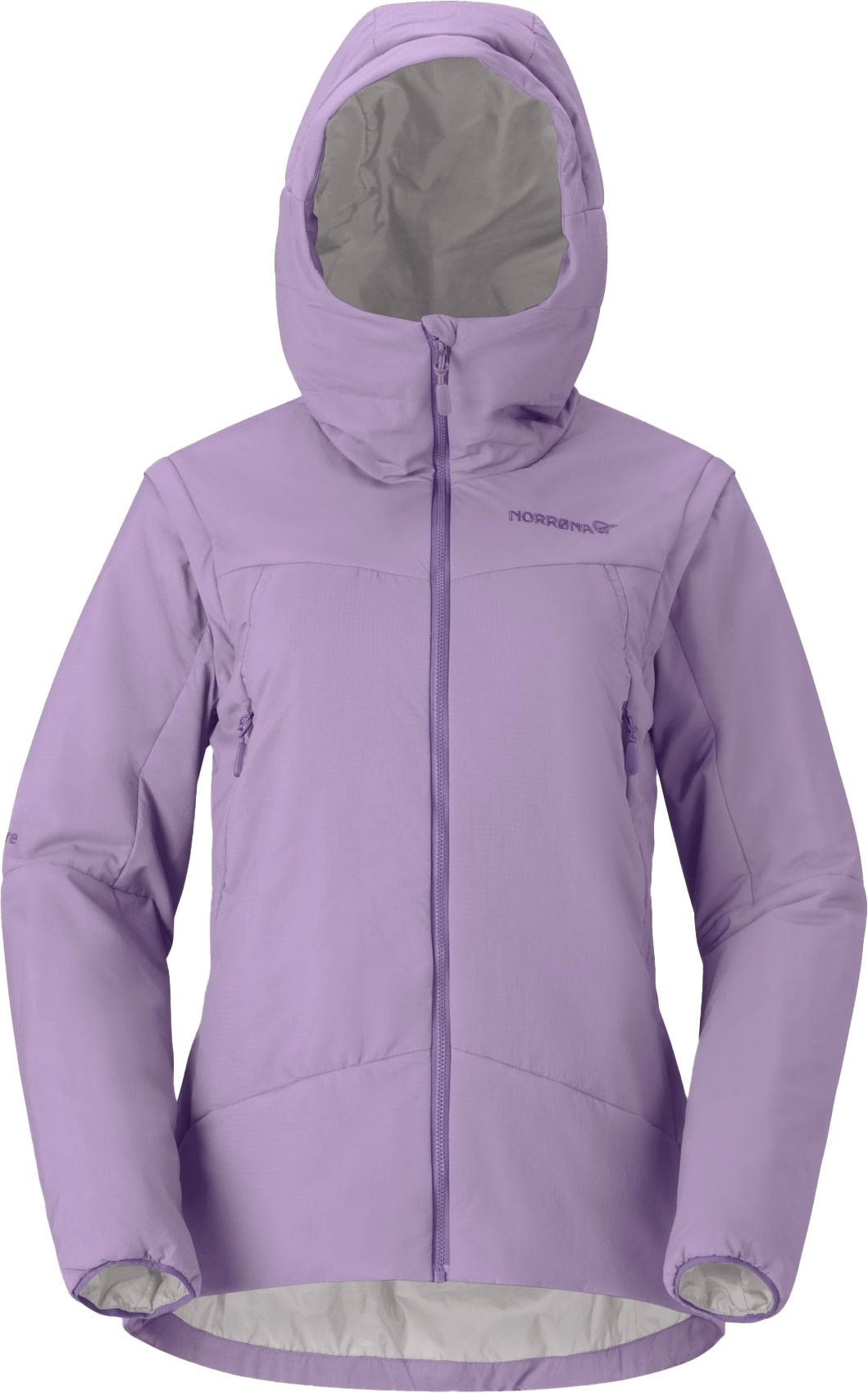 Doudoune Norrona Møre Thermo60 Aero100 Jacket Purple Sage femme : isolation synthétique 60 g/m², tissu Aero100 respirant, manches amovibles, capuche casque-compatible.