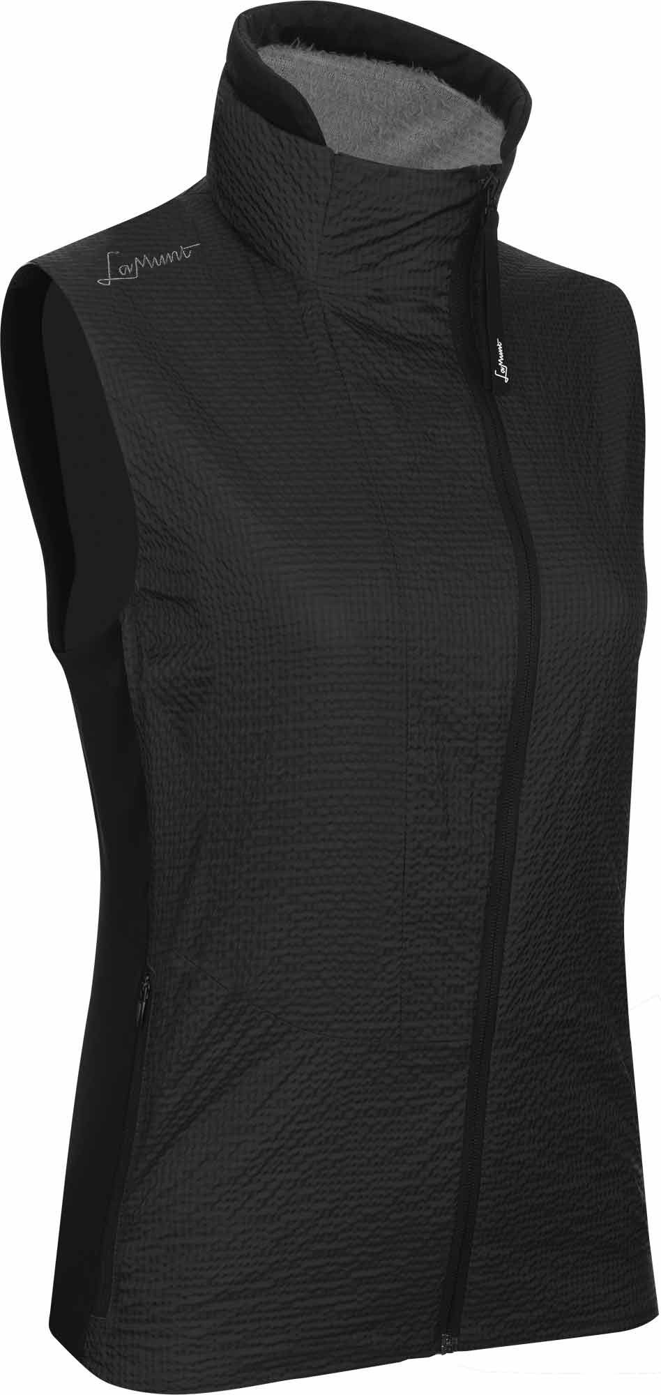 Veste polaire sans manches LaMunt Alessia Ptc Alpha Wind Rocky Black pour femme, coupe-vent et chaude avec Polartec® Alpha® recyclé, tissu Seersucker stretch, softshell latéral respirant et déperlance durable.