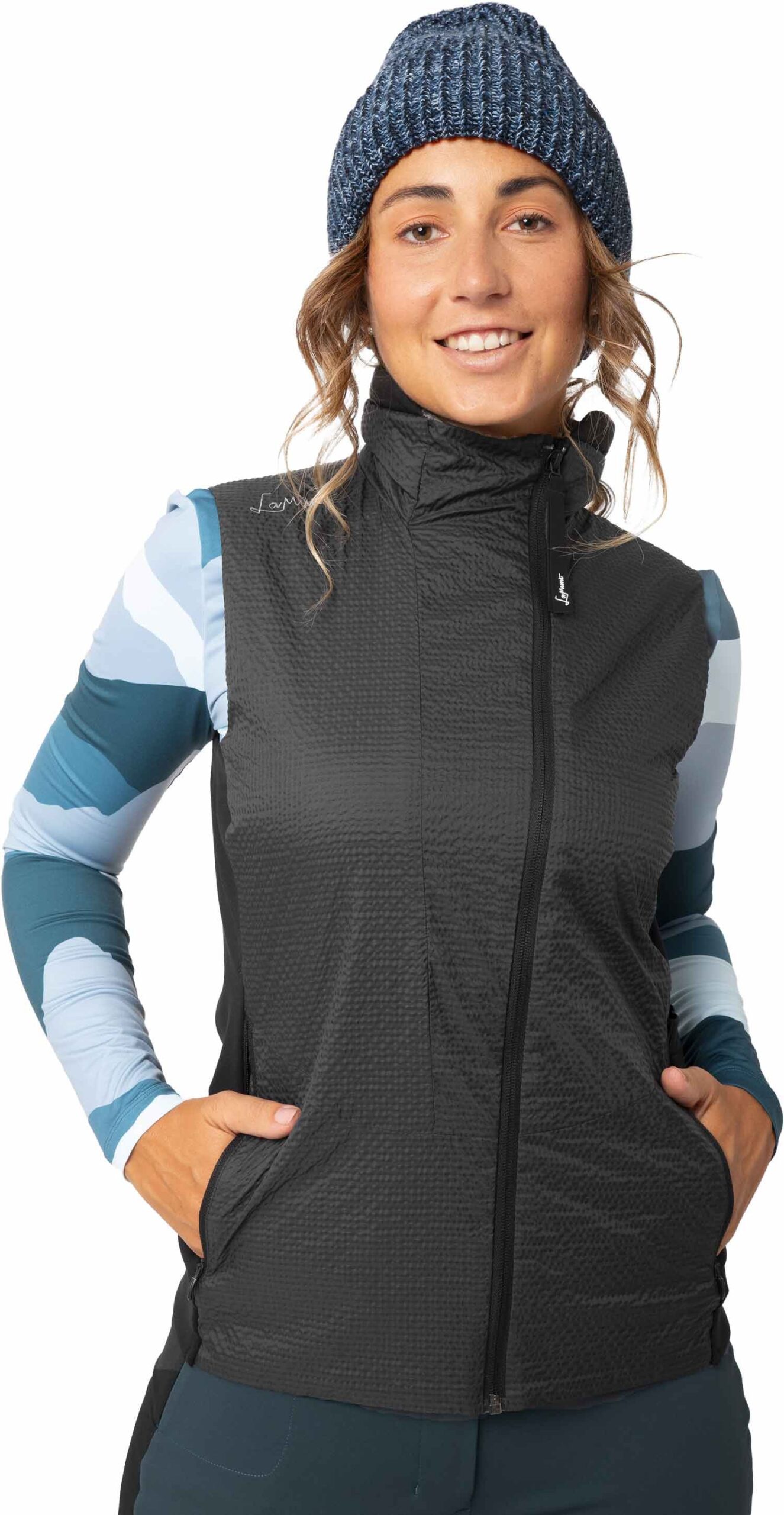 La veste polaire sans manches Alessia Ptc Alpha Wind Rocky Black pour femme de la marque LaMunt conjugue esthétique et technique afin d’assurer une protection efficace durant vos activités hivernales en montagne. Conçue par des femmes et destinée aux femmes, cette veste coupe-vent offre chaleur et protection pour profiter de journées dans des conditions optimales.