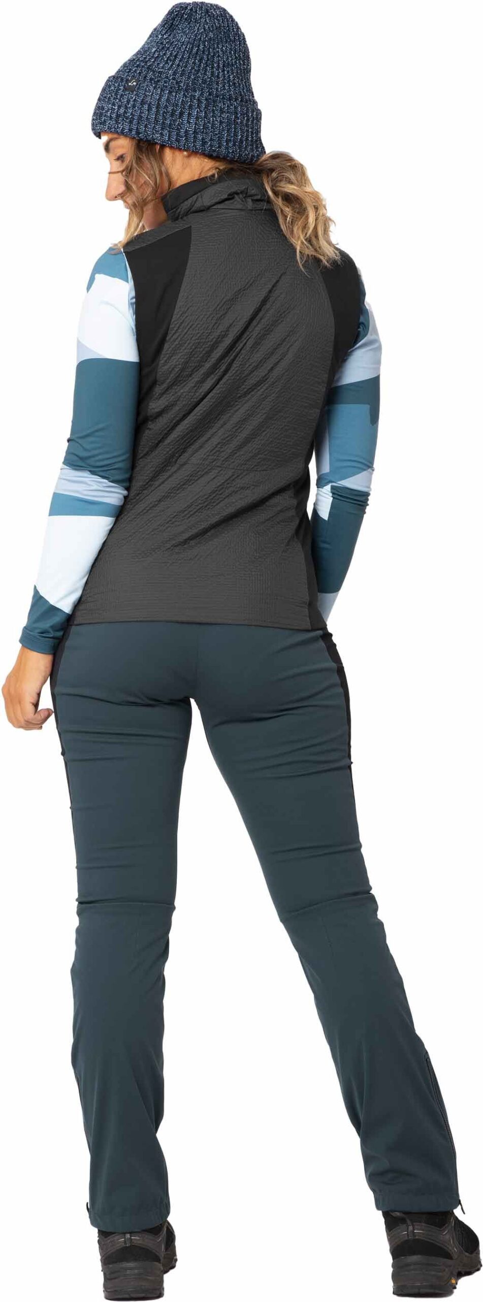 Son tissu Seersucker garantit une excellente liberté de mouvement, alors que son intérieur constitué de polaire recyclée Polartec® Alpha® procure un apport thermique optimal. Des panneaux extensibles en softshell sont positionnés sur les côtés pour une respirabilité maximale et un traitement déperlant durable offre une protection efficace face aux intempéries.