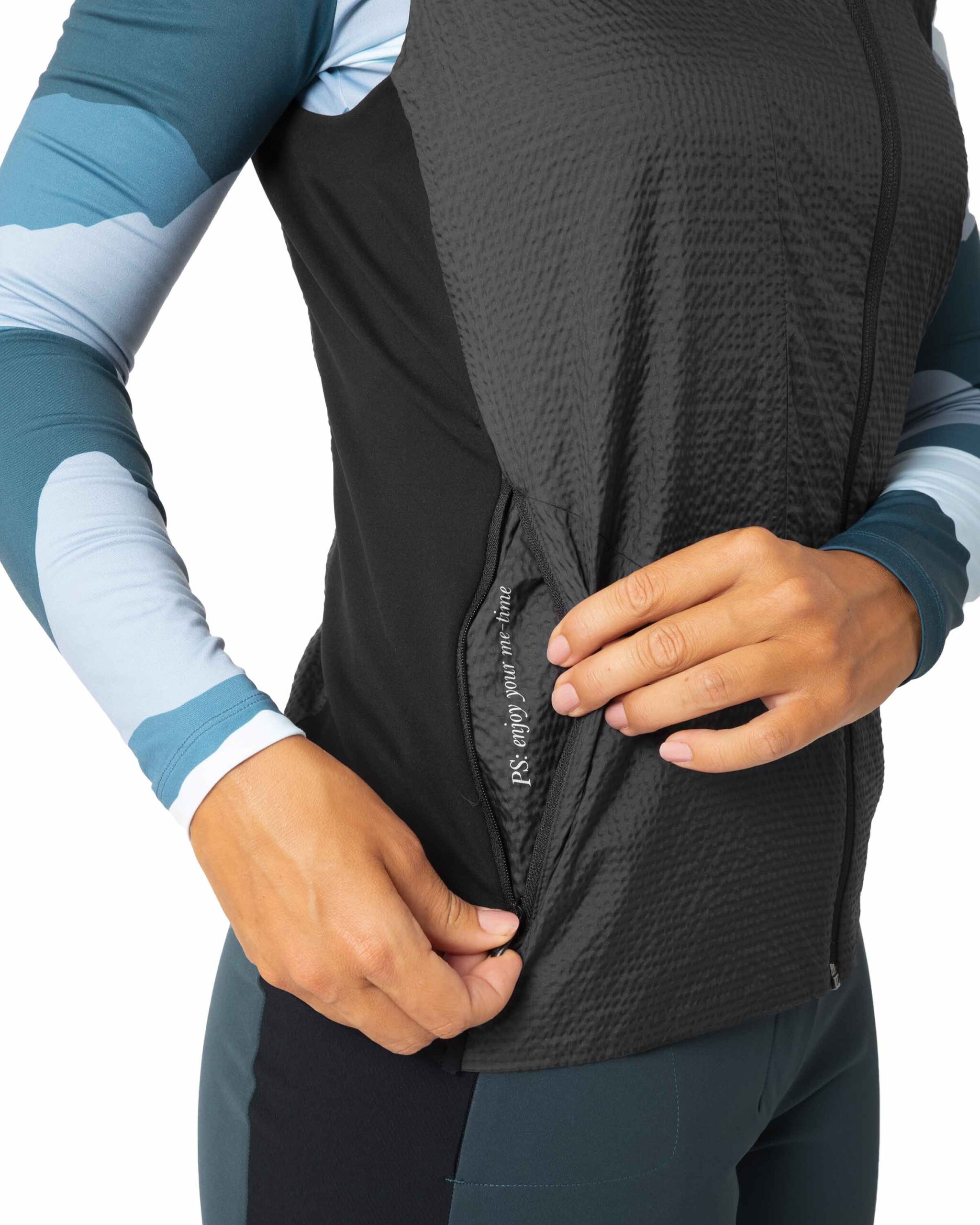 - Empiècement : Durastretch sans PFA (42 % polyester, 38 % polyamide, 10 % élasthanne, 10 % polyuréthane)