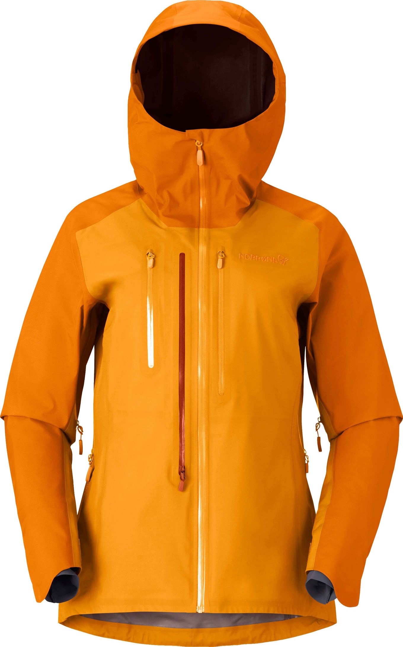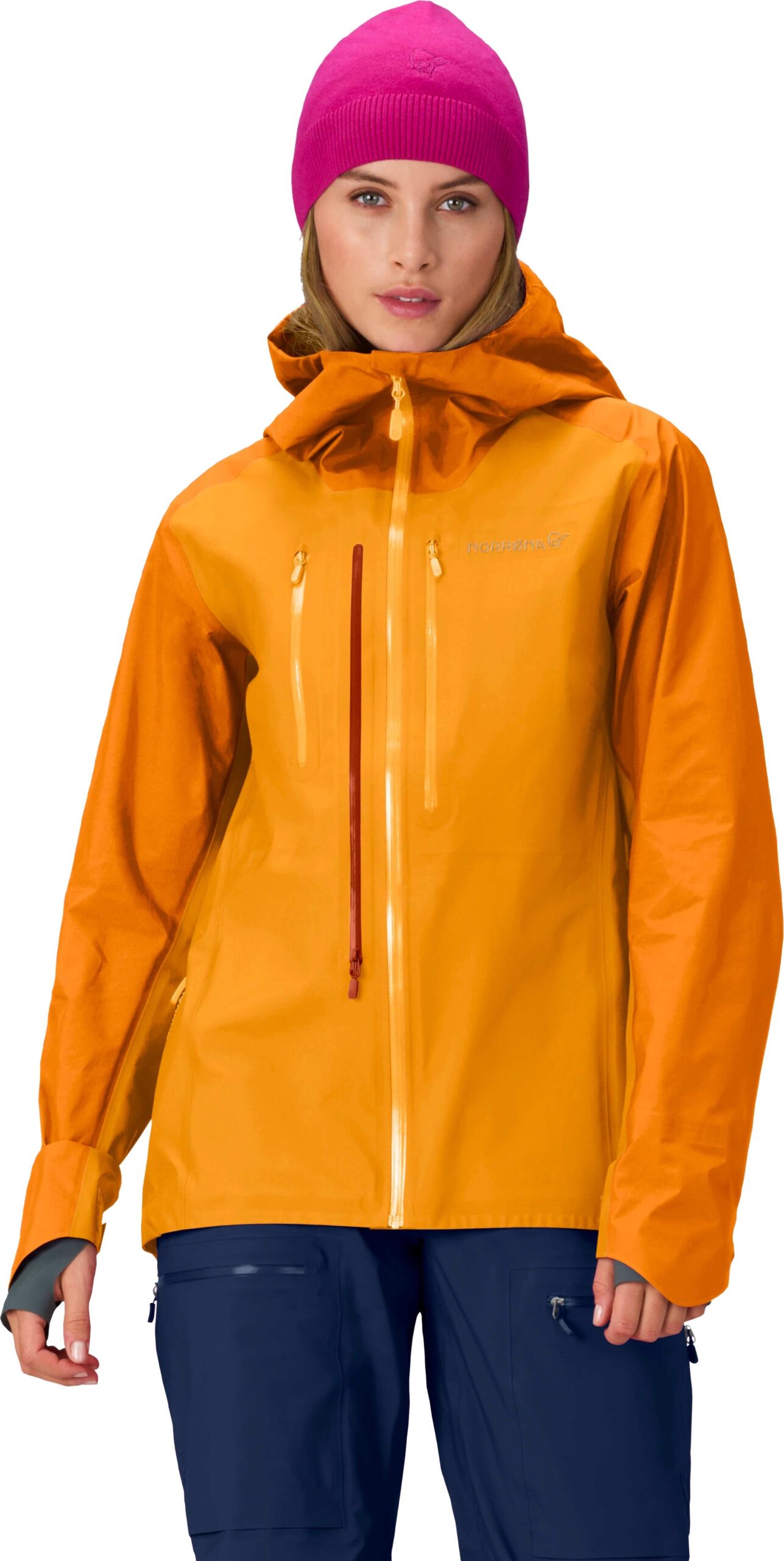 Veste de ski de randonnée femme Norrona Lyngen Gore-Tex Jacket Autumn Glory, membrane GORE-TEX ePE C-KNIT imperméable et respirante, empiècements ripstop, coupe technique articulée, aérations sous les bras et poitrine, légère et mobile.