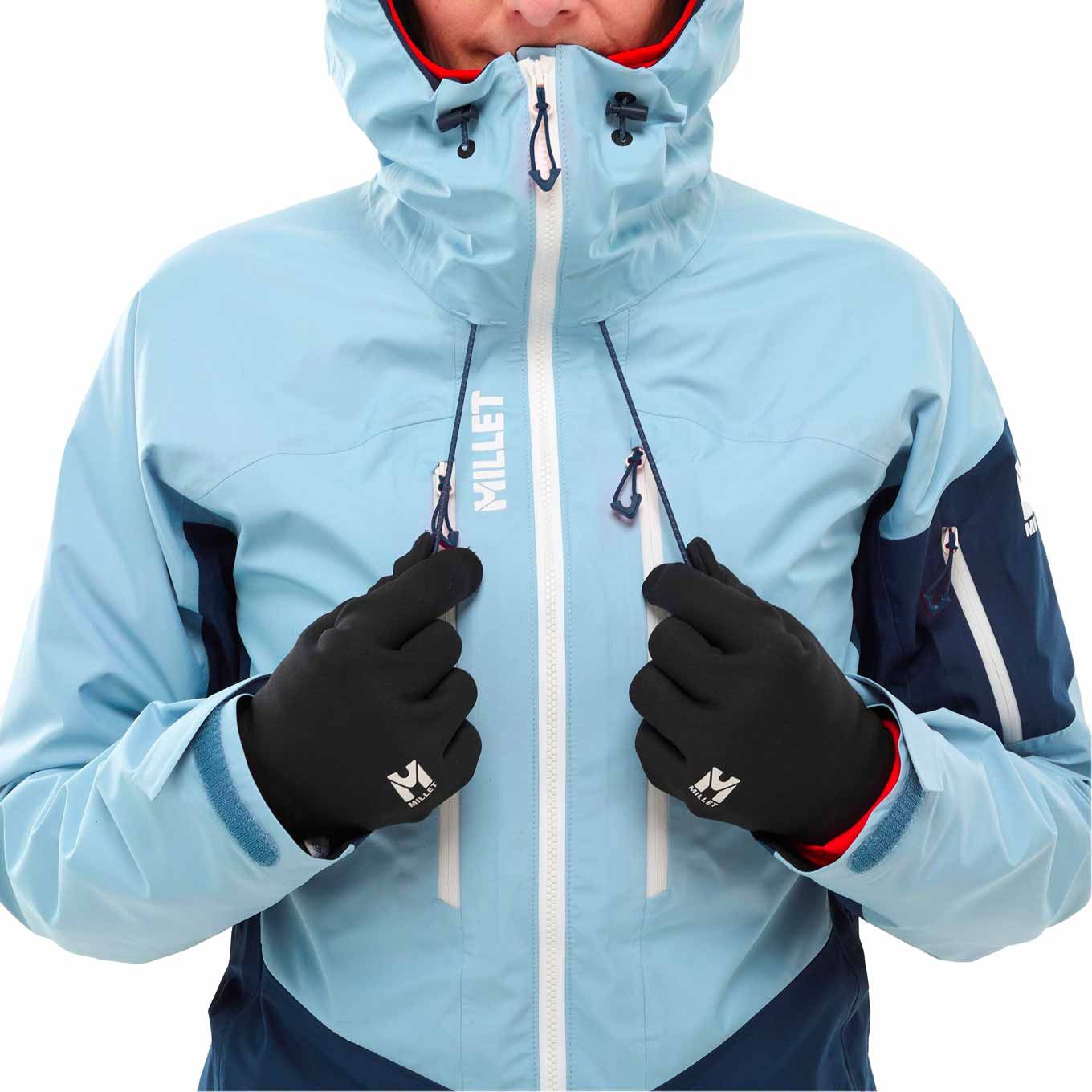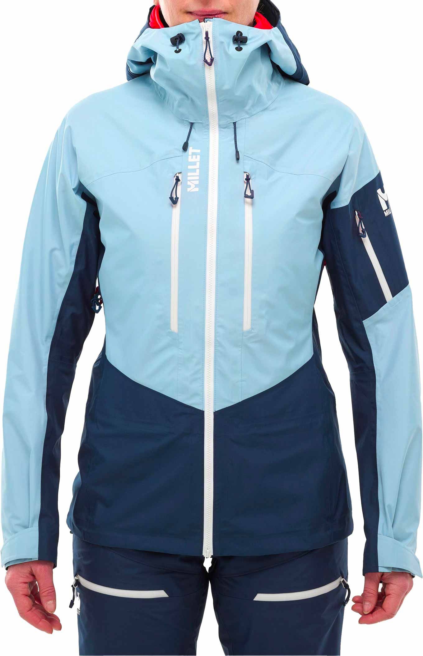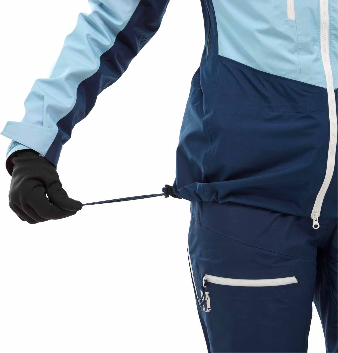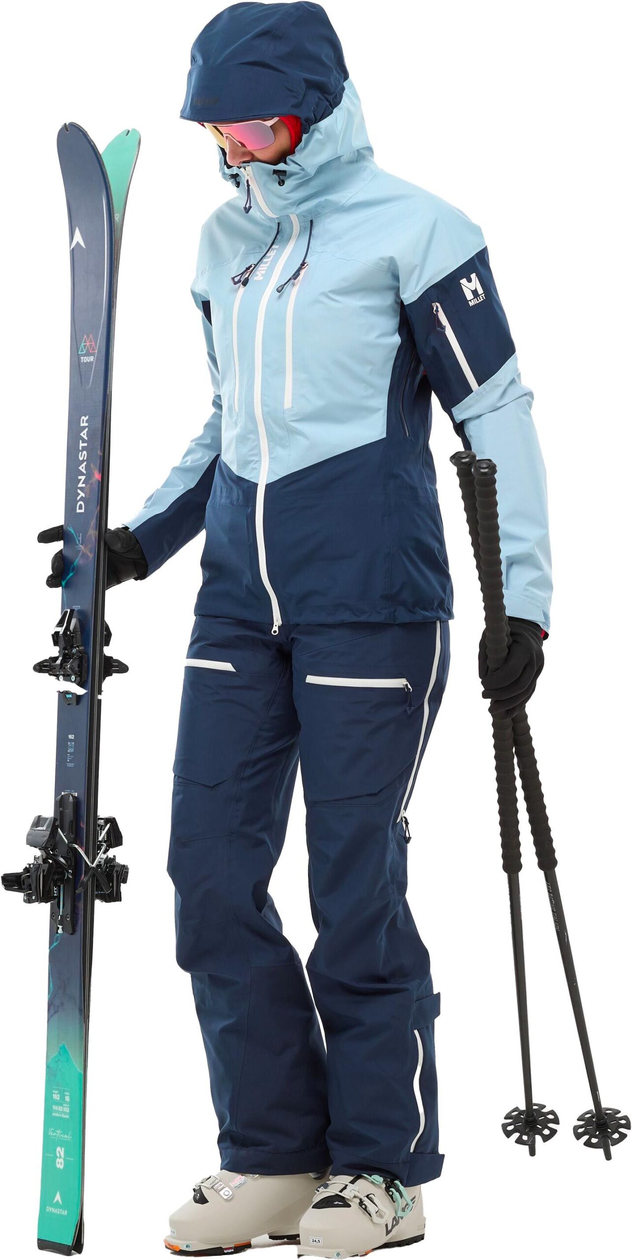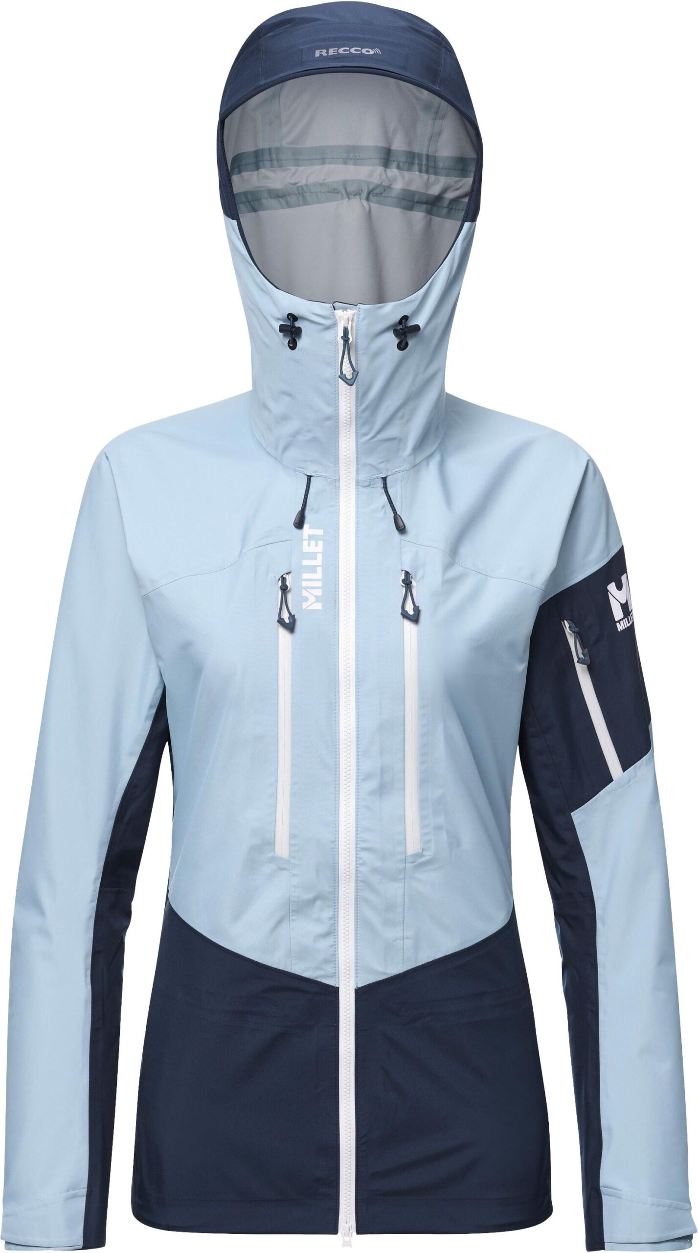 Veste Millet M White 3L Jkt pour femme, en tissu stretch DRYEDGE™ HIGH BREATH imperméable et ultra-respirante, conçue pour le ski de randonnée : capuche réglée, coutures thermosoudées, poches forfait et système RECCO®.