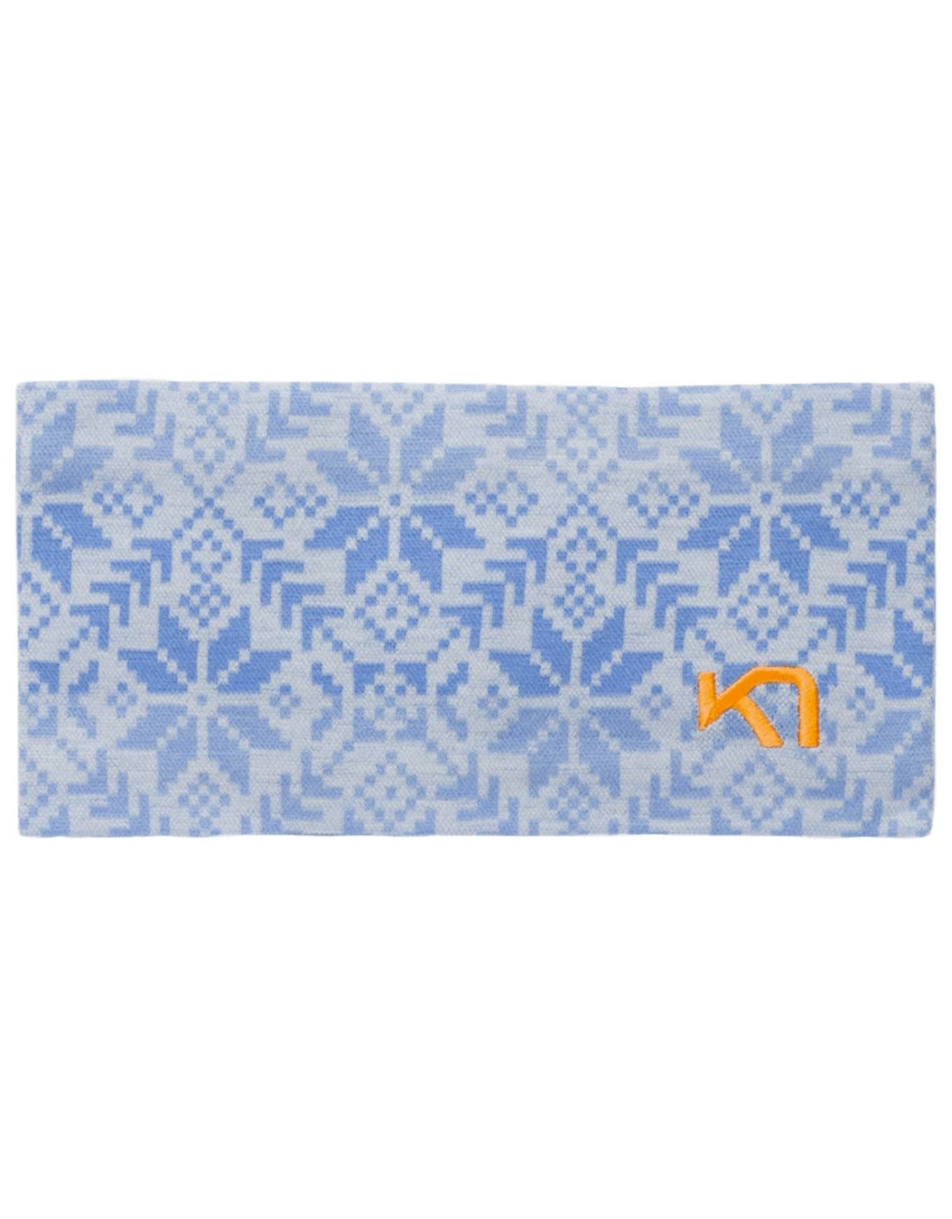 Kari Traa Anna Headband Sea, bandeau femme en laine mérinos ultra-fin à motif flocons, respirant, évacue l’humidité et sèche vite pour le ski nordique et les sorties hivernales.