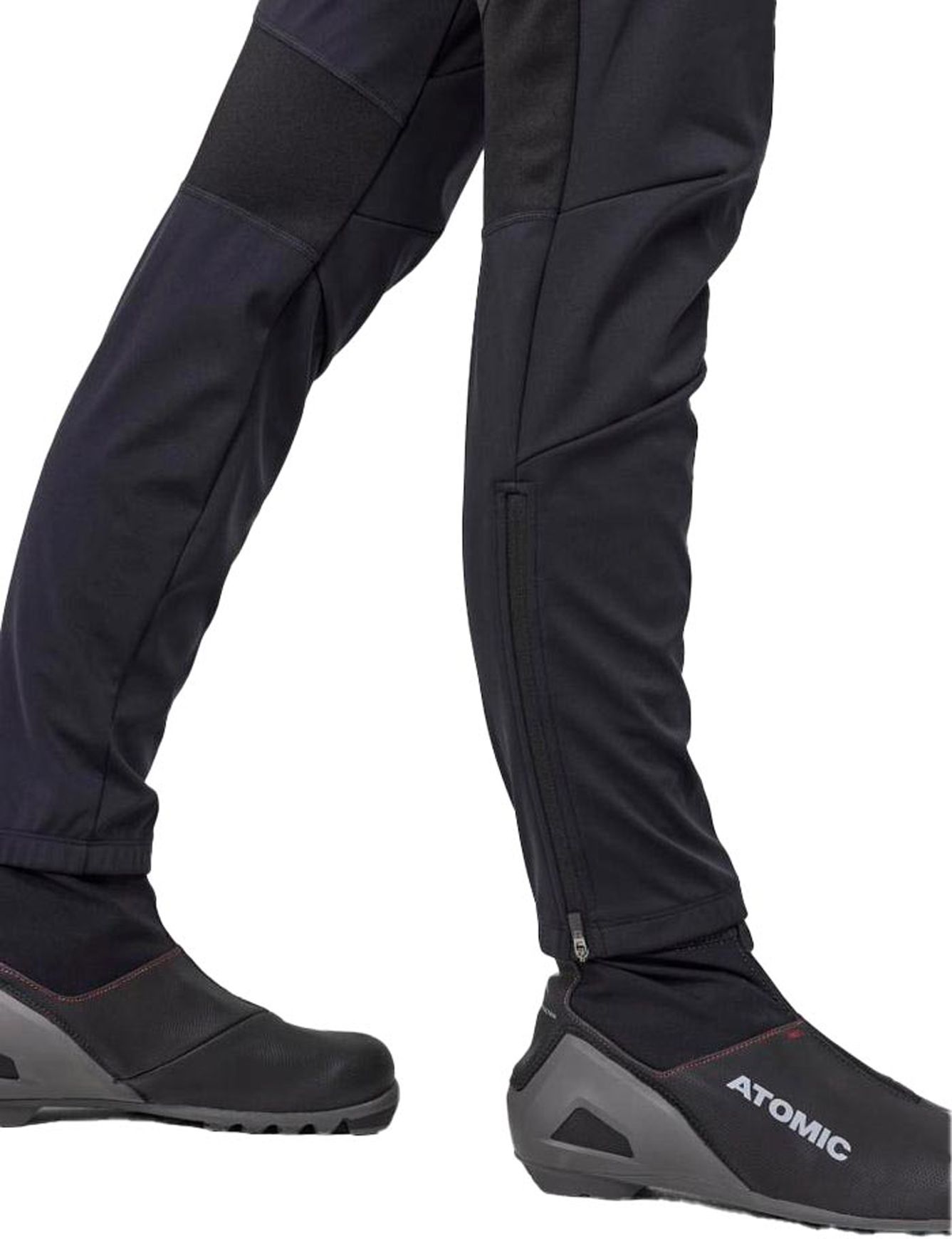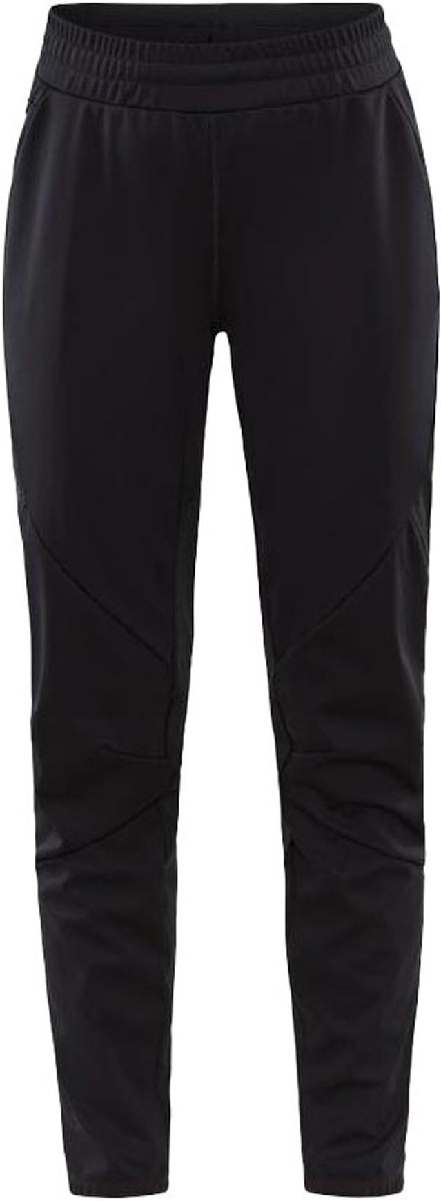 Craft Core Nordic Training Pants Black : pantalon technique femme softshell coupe-vent et résistant à l’eau, genoux préformés, ouvertures zippées au bas des jambes, poche sécurisée pour téléphone ou clés.