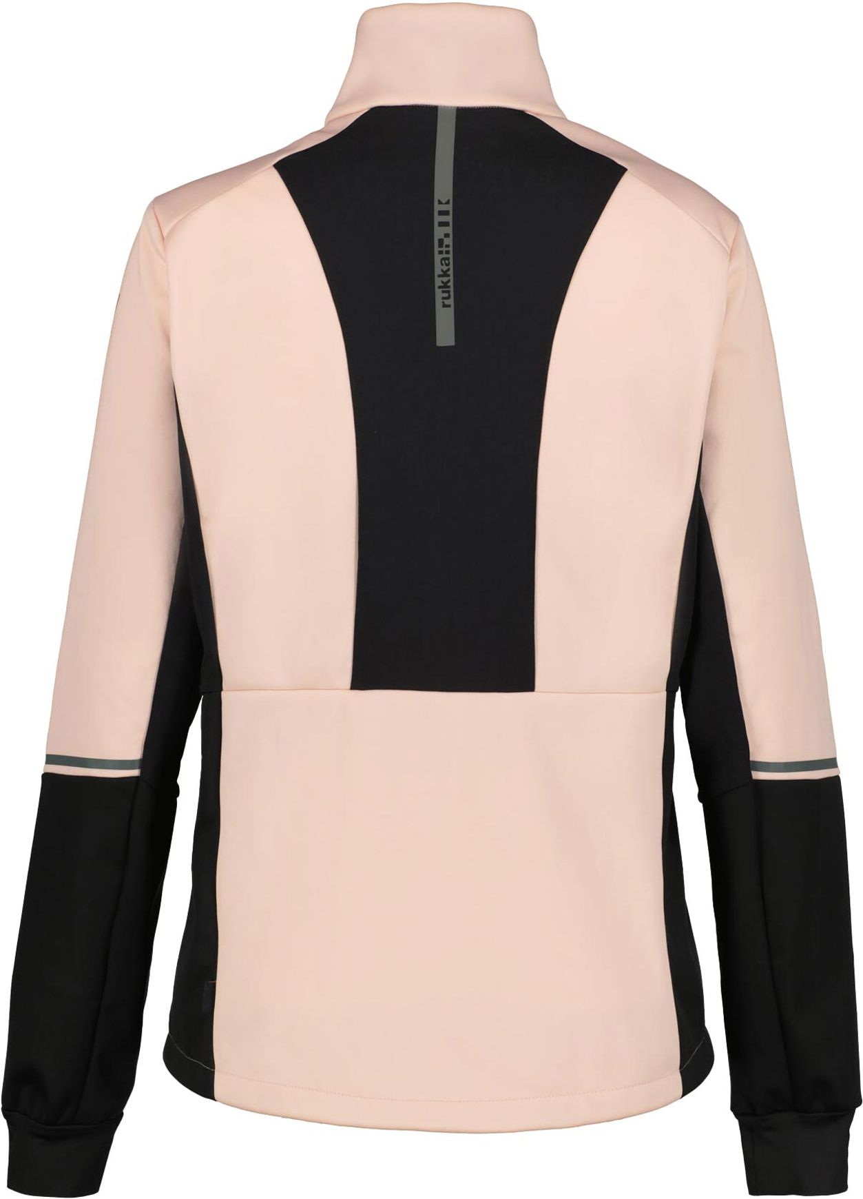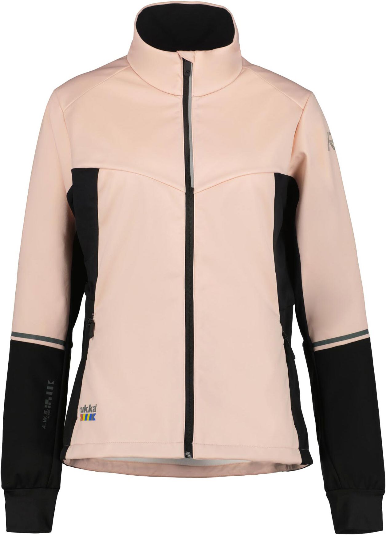 Veste Rukka Tirro Rose Pale pour femme, conçue pour le ski nordique hivernal. Tissu respirant et extensible, coupe ajustée, traitement déperlant durable pour une protection contre les légères intempéries.