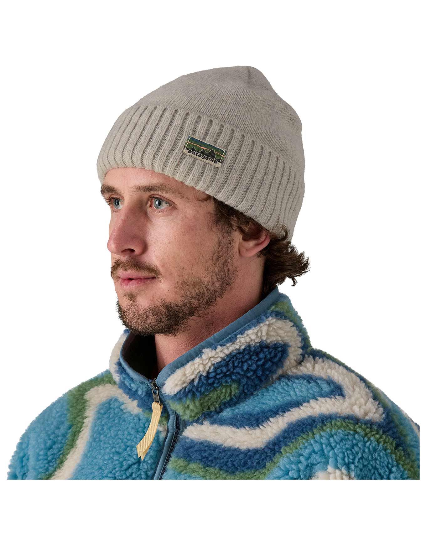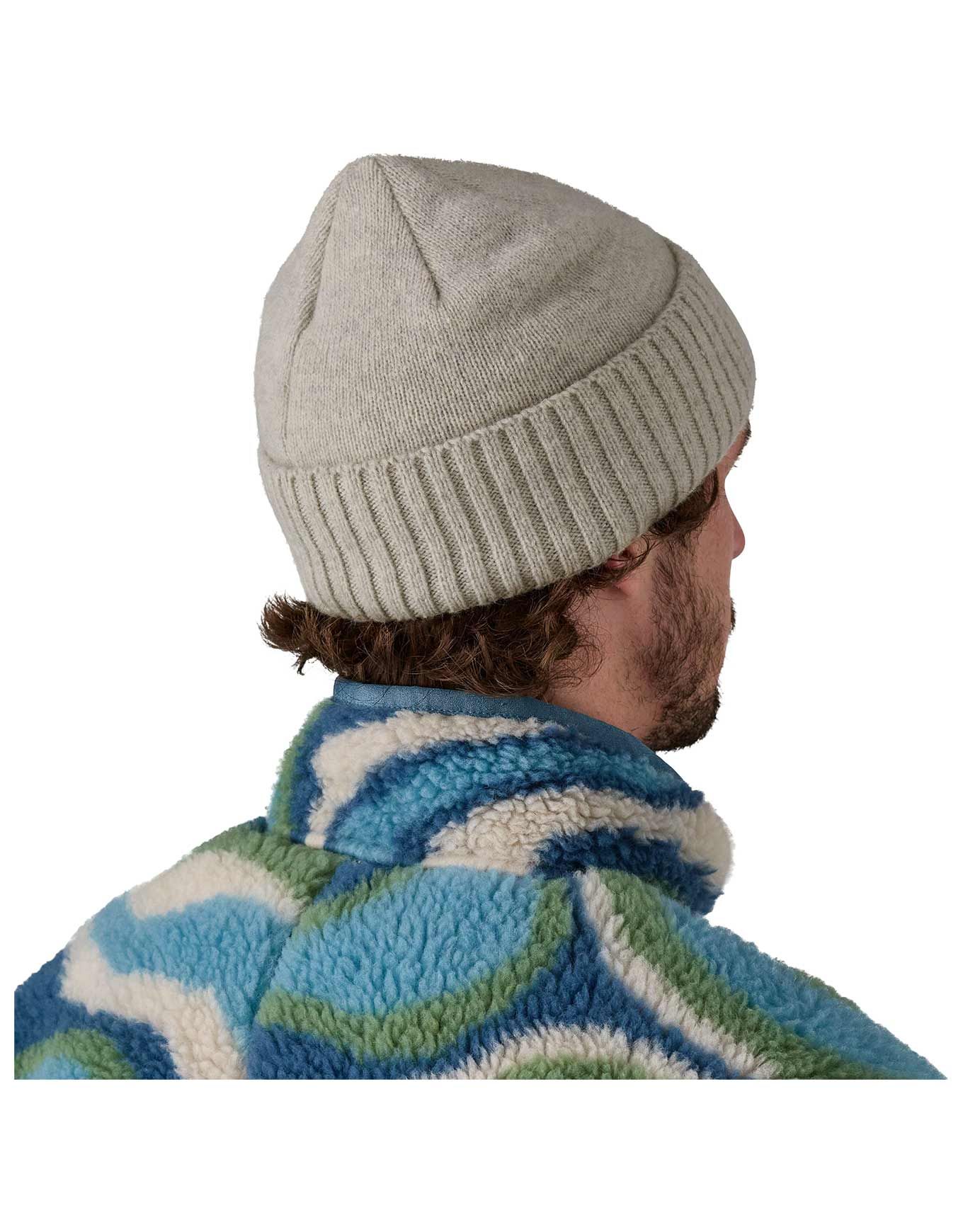 Le bonnet Brodeo Beanie OG Legacy Label Crisp Grey Patagonia, en laine et nylon recyclé, protège du froid hivernal avec style grâce à son revers classique et son patch logo discret.