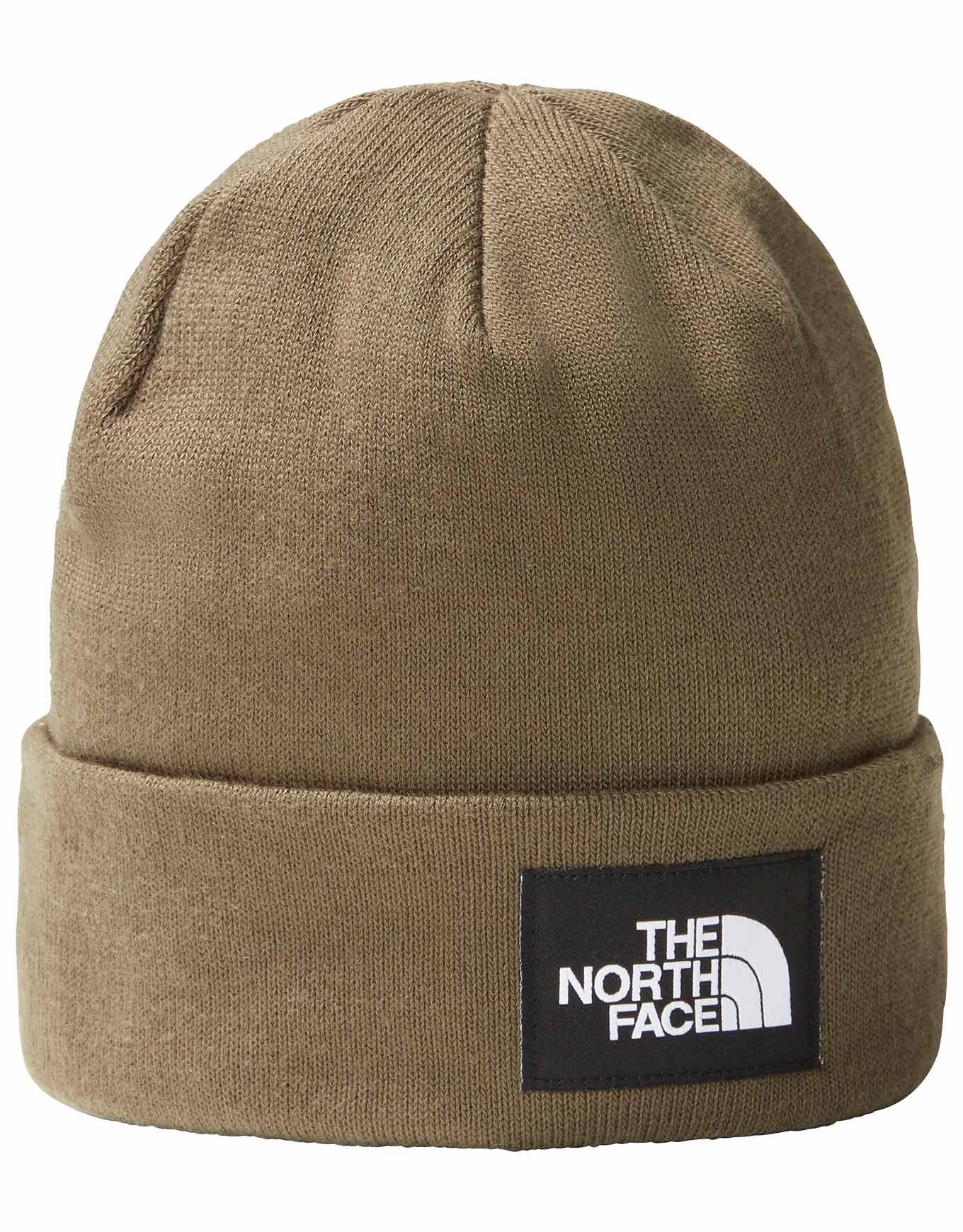 Bonnet The North Face Dock Worker Recycled New Taupe Green en polyester recyclé à 95 %, coupe profonde, chaleur urbaine. Revers logo tissé, portable relevé ou couvrant.