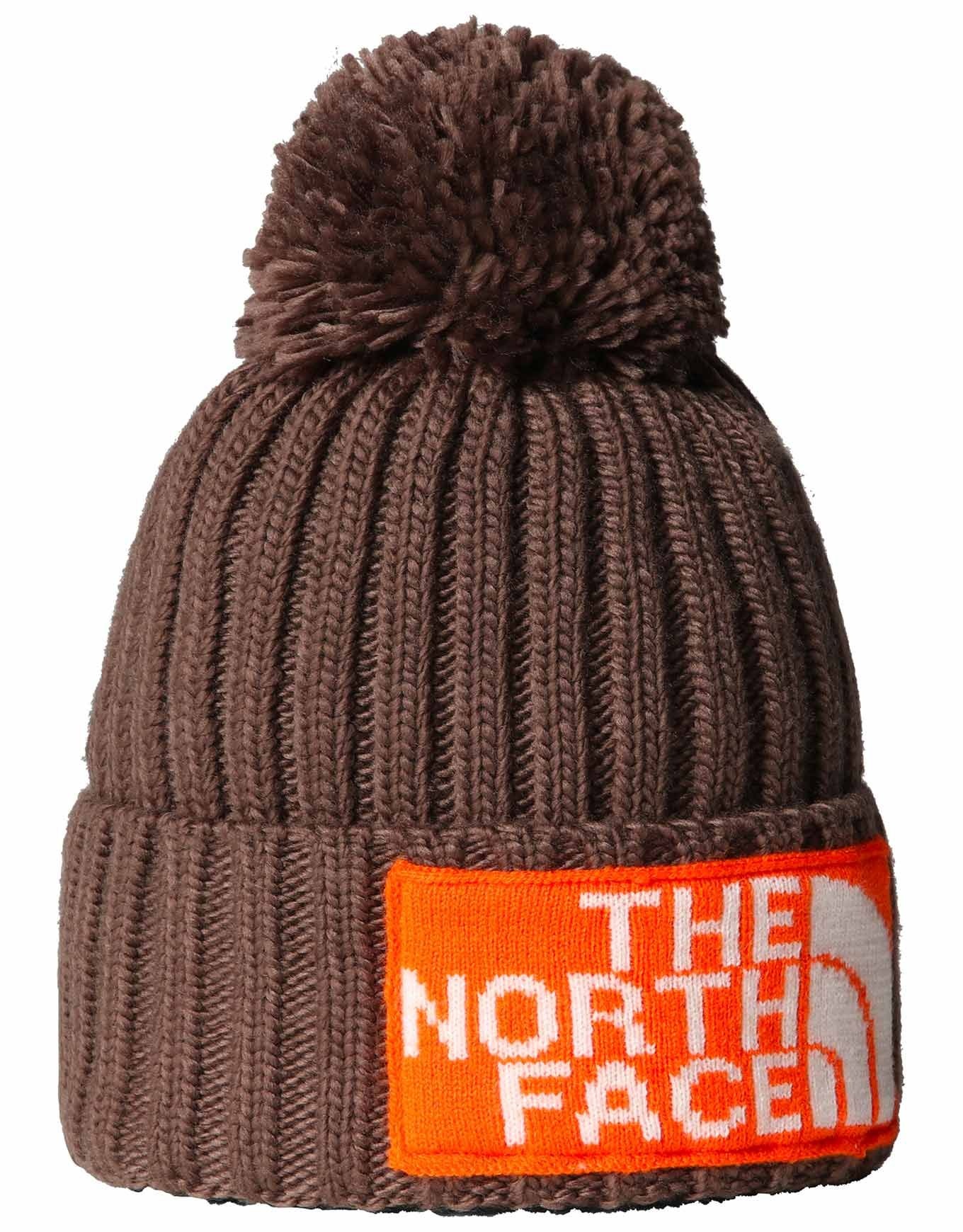 Le bonnet Heritage Ski Tuke Smokey Brown TNF Orange de The North Face allie chaleur et style grâce à son tricot à côtes exagérées en polyester 100 % recyclé, sa coupe profonde enveloppante et son pompon amovible.