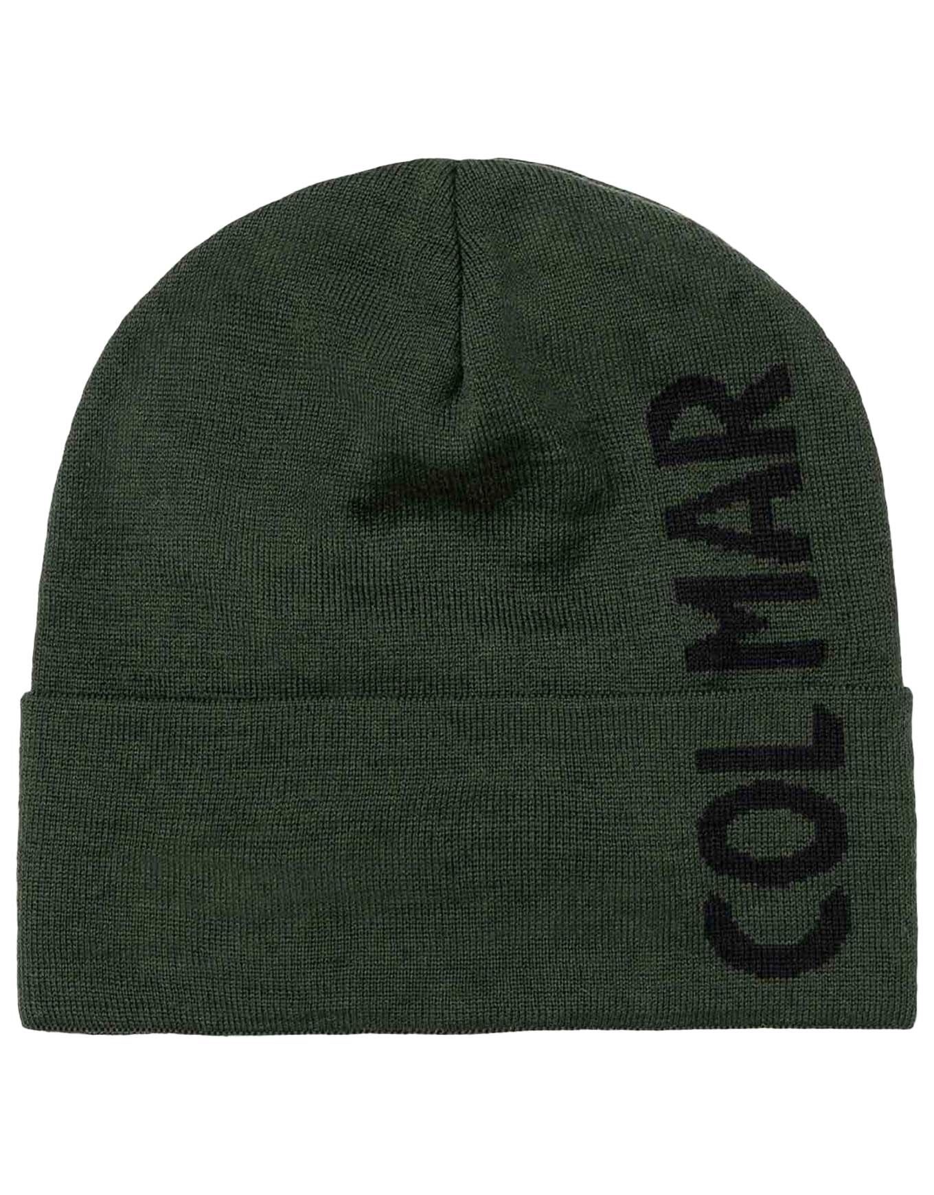 Colmar Men Beanie Woodland Black : bonnet homme en laine vierge et acrylique, logo jacquard contrasté sur revers et corps, style raffiné polyvalent casual-sport.