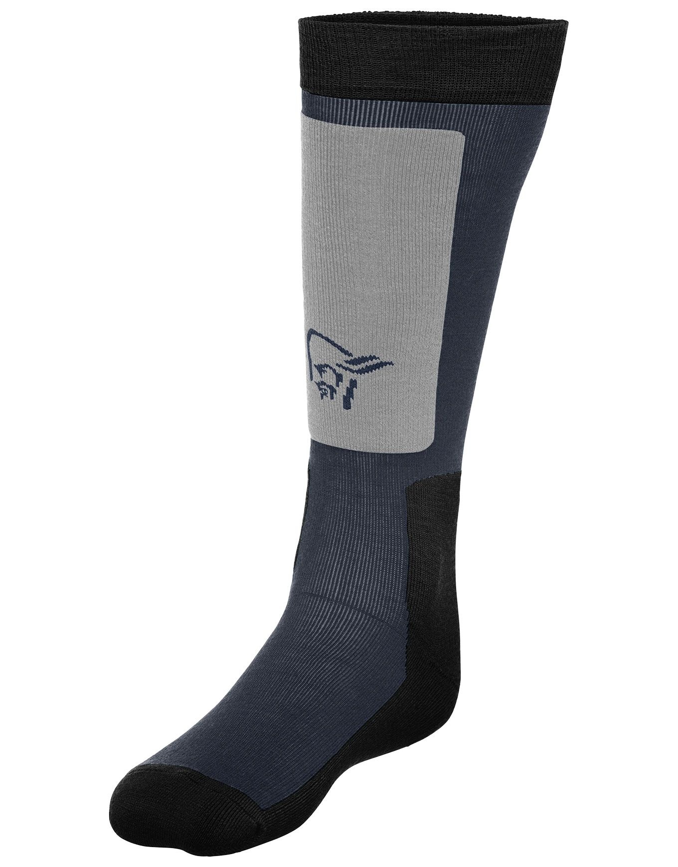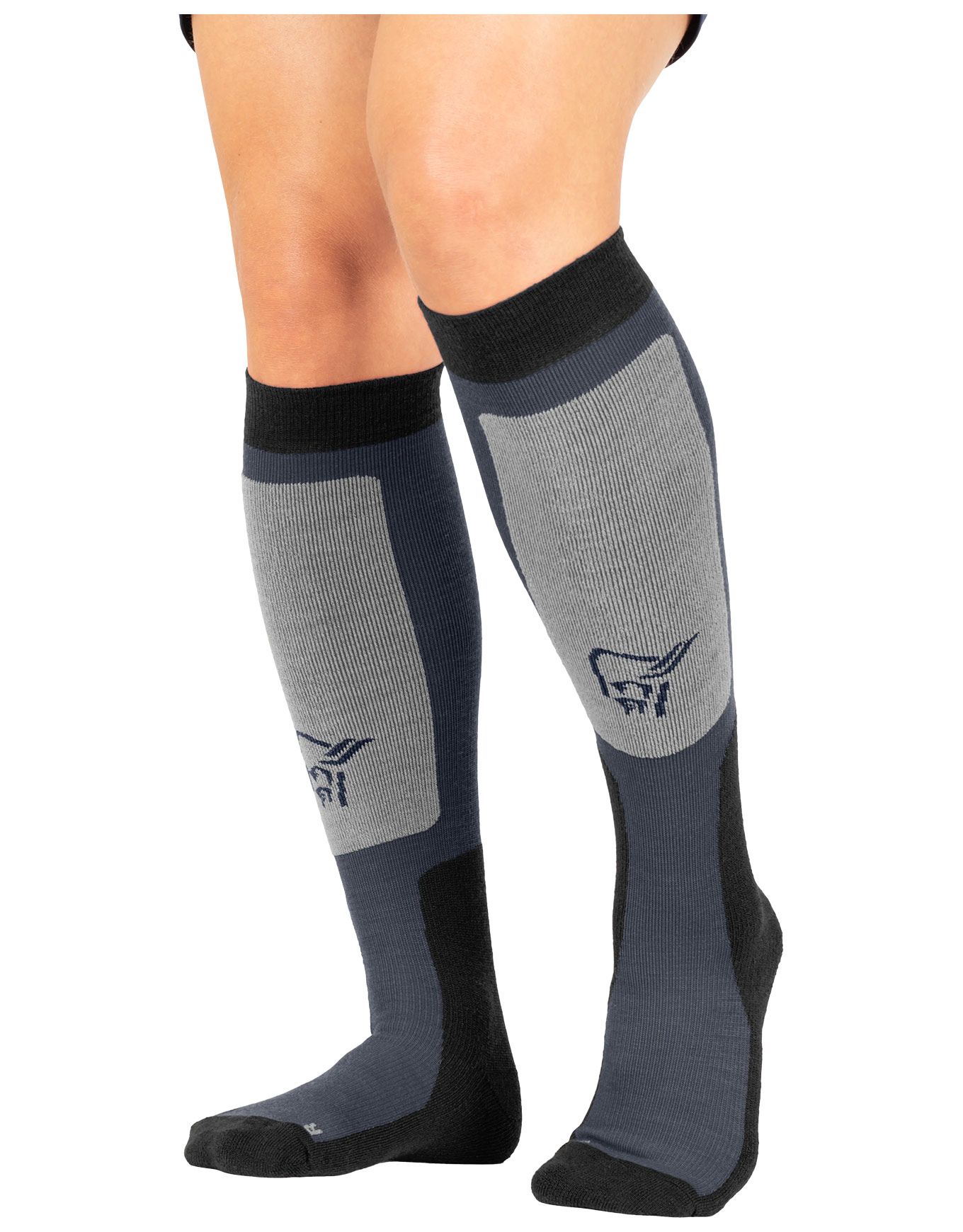 Chaussettes hautes Norrona Lofoten Mid MerinoUll Long Socks Cool Black unisexe, en laine mérinos, thermorégulantes, respirantes et antimicrobiennes pour freeride ski/snowboard.