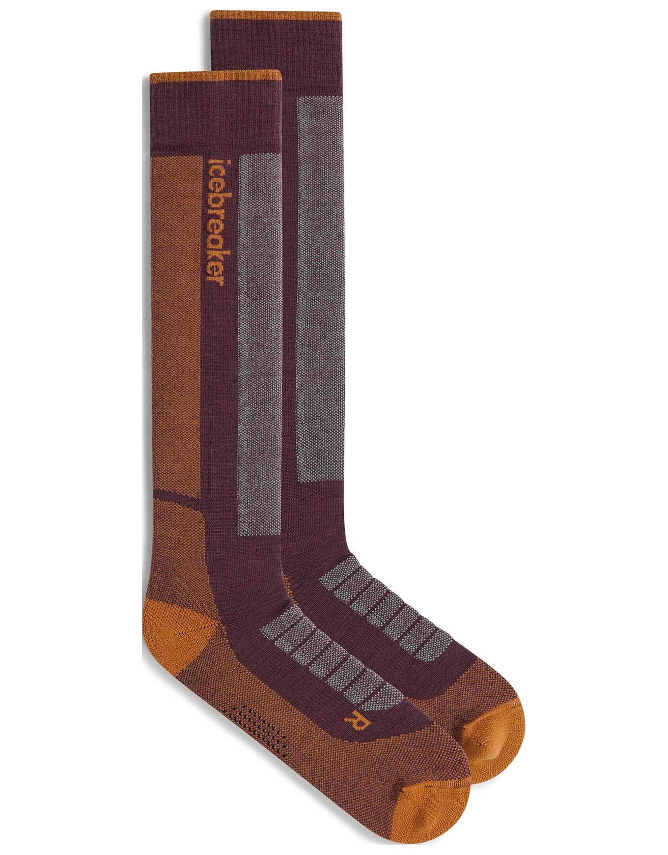 Icebreaker Merino Ski+ Medium OTC pour homme : chaussettes de ski en laine mérinos respirante, anti-odeurs, avec soutien ciblé, talon et pointe renforcés, sans couture.