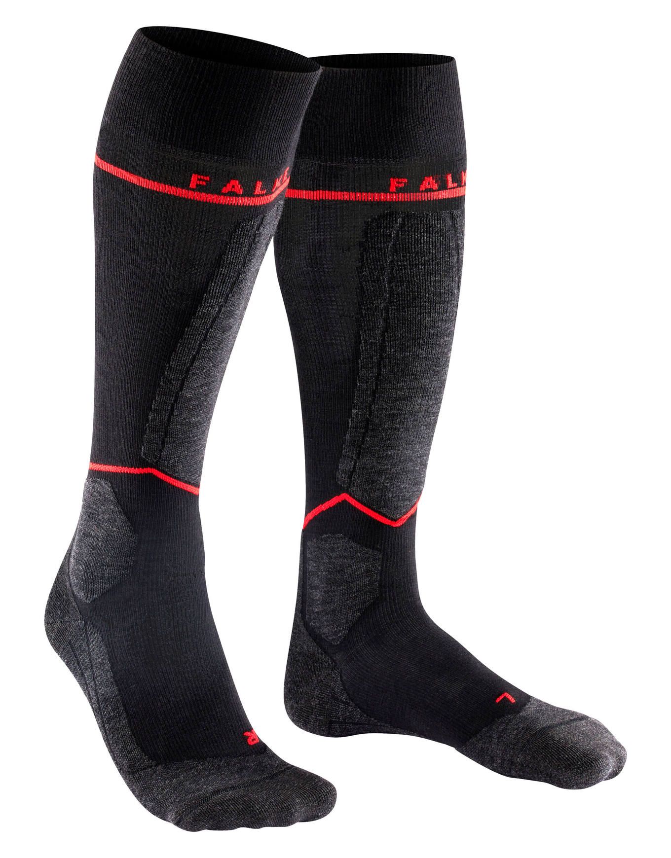 Falke SK4 Advanced Compression Light Black Mix : chaussettes de ski haute performance pour homme, à base de laine mérinos (50 %), triple couche respirante, compression légère et rembourrage ultraléger.