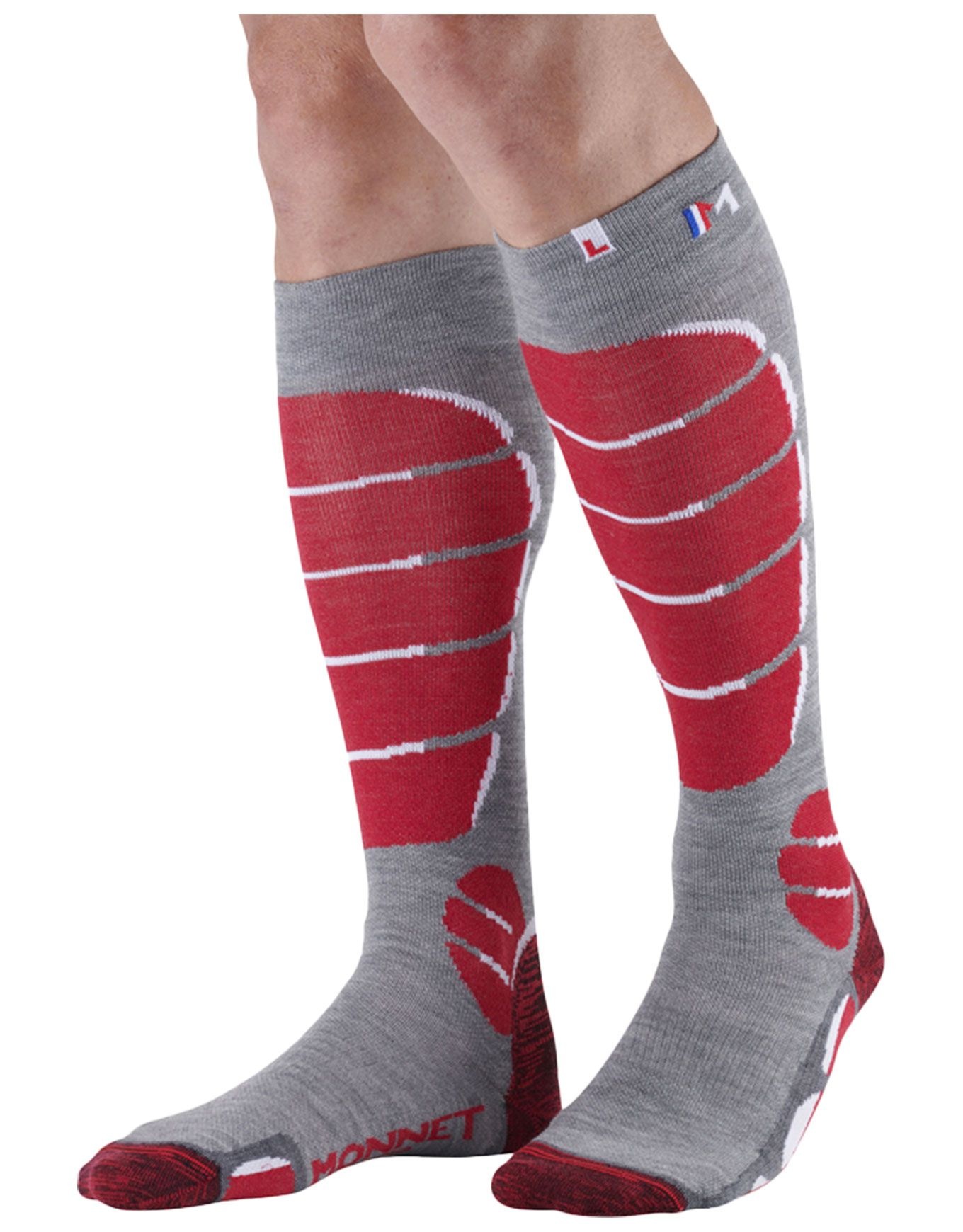 Monnet Ski X-Light Socks : chaussettes de ski unisexes fines offrant un contrôle optimal et un confort ciblé grâce à 64 % de laine mérinos, renforts talon-orteils-malléoles et compression légère réduisant frottements et ampoules.