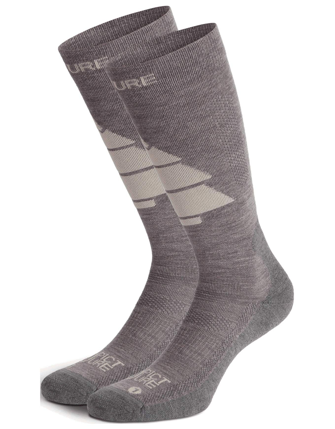 Chaussettes de ski Wooling Ski Excalibur unisexe Picture Organic Clothing en laine mérinos, chaudes, anti-odeur, zones ventilation et renforts talons/pieds pour le confort en montagne.